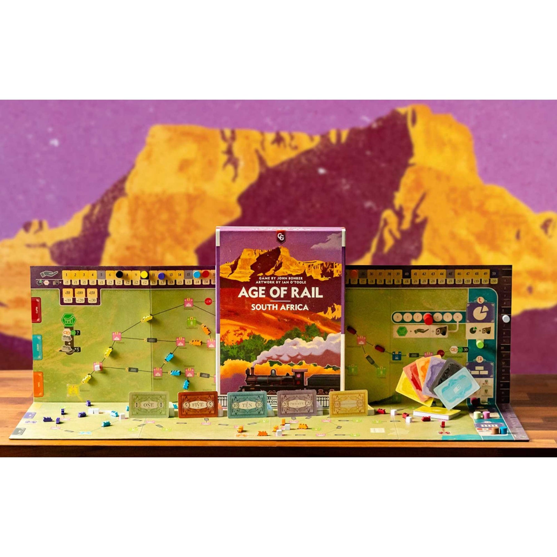 The morning sun shines on rail cars full of goods traveling across the vast stretches of land in South Africa. The settlements in the region are growing, giving opportunists a chance to capitalize on the higher demand for goods. More railroads are populating the area and now is your chance to harness your financial expertise to build the most profitable railroad empire.