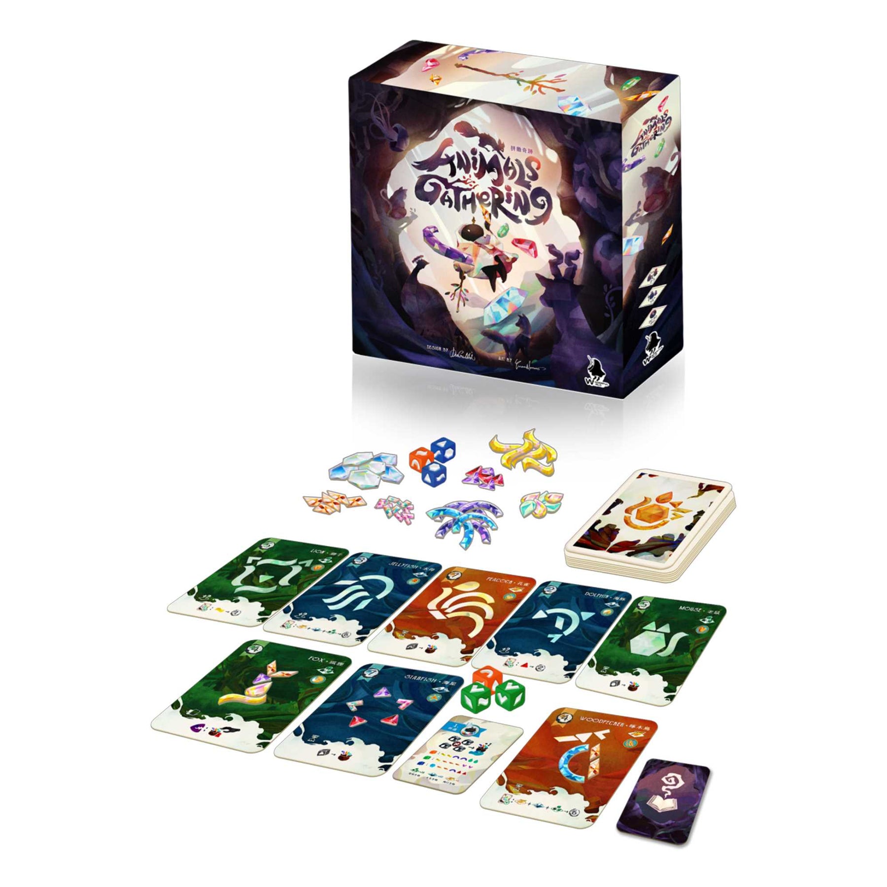 Under the intrusion of dark magic, the animals have become extinct in Crystal Forest. We mages gather the Magic Stones of the forest and resist the darkness to revive magical animals. Animals Gathering is a dice family game for 2-5 players that incorporates dice management, tile placement, set collection, and push your luck elements. The goal is to earn the most points by placing magic stones in Animal Index Cards to revive animals, which in turn provide powers and points as your companion.