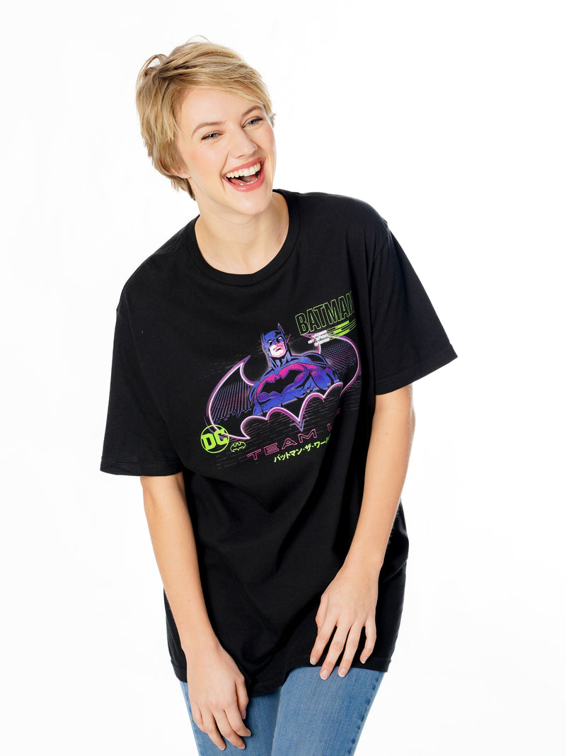 Don this Batman Anime Matrix Grid T-shirt and be a live-action comic book hero! The unisex black tee boasts a big ol' print, so you can show off your superhero-level style.