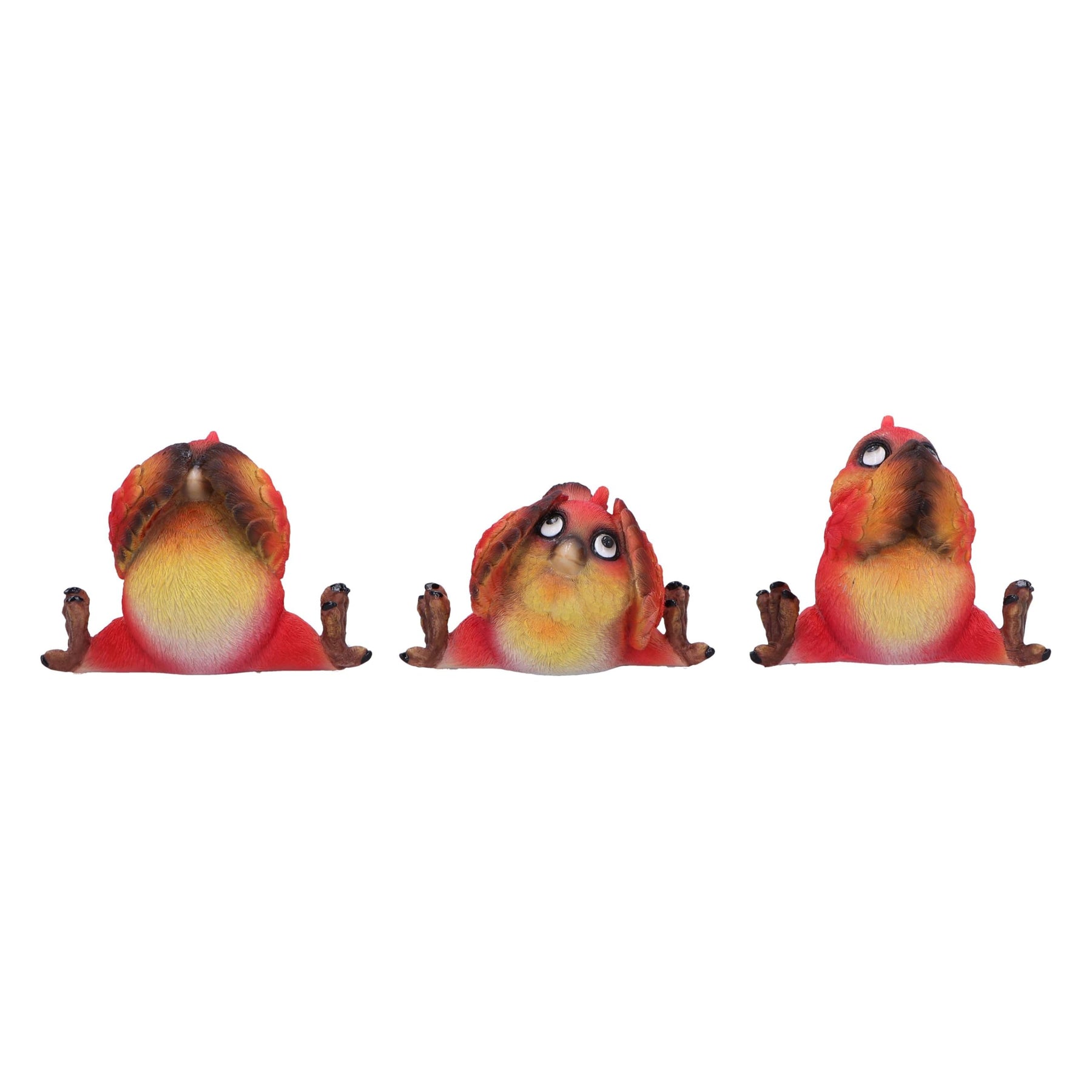 - Hilarious Set of Three Red Bird Figurines: These comical bird figurines offer a playful twist on the traditional three wise monkeys