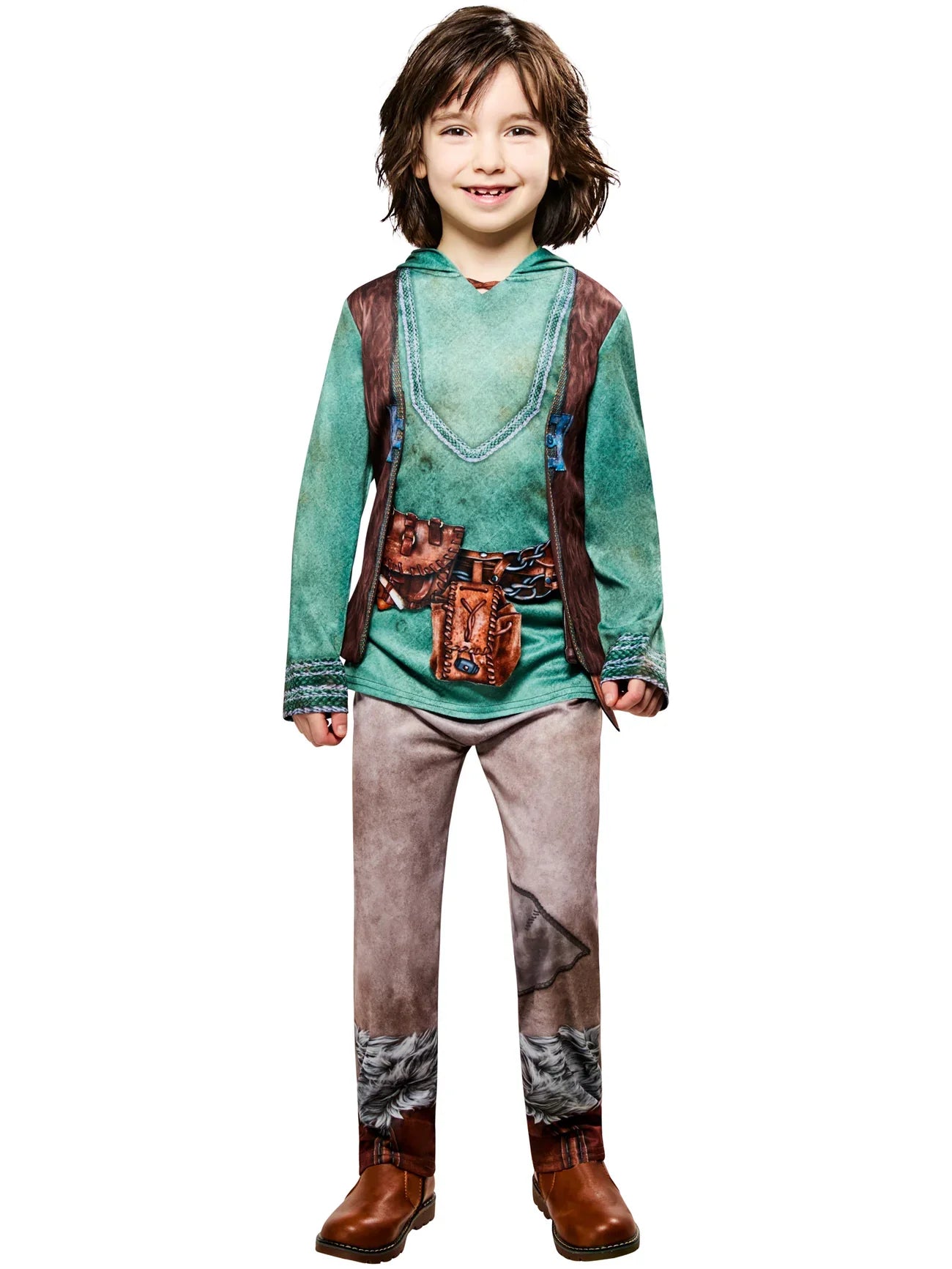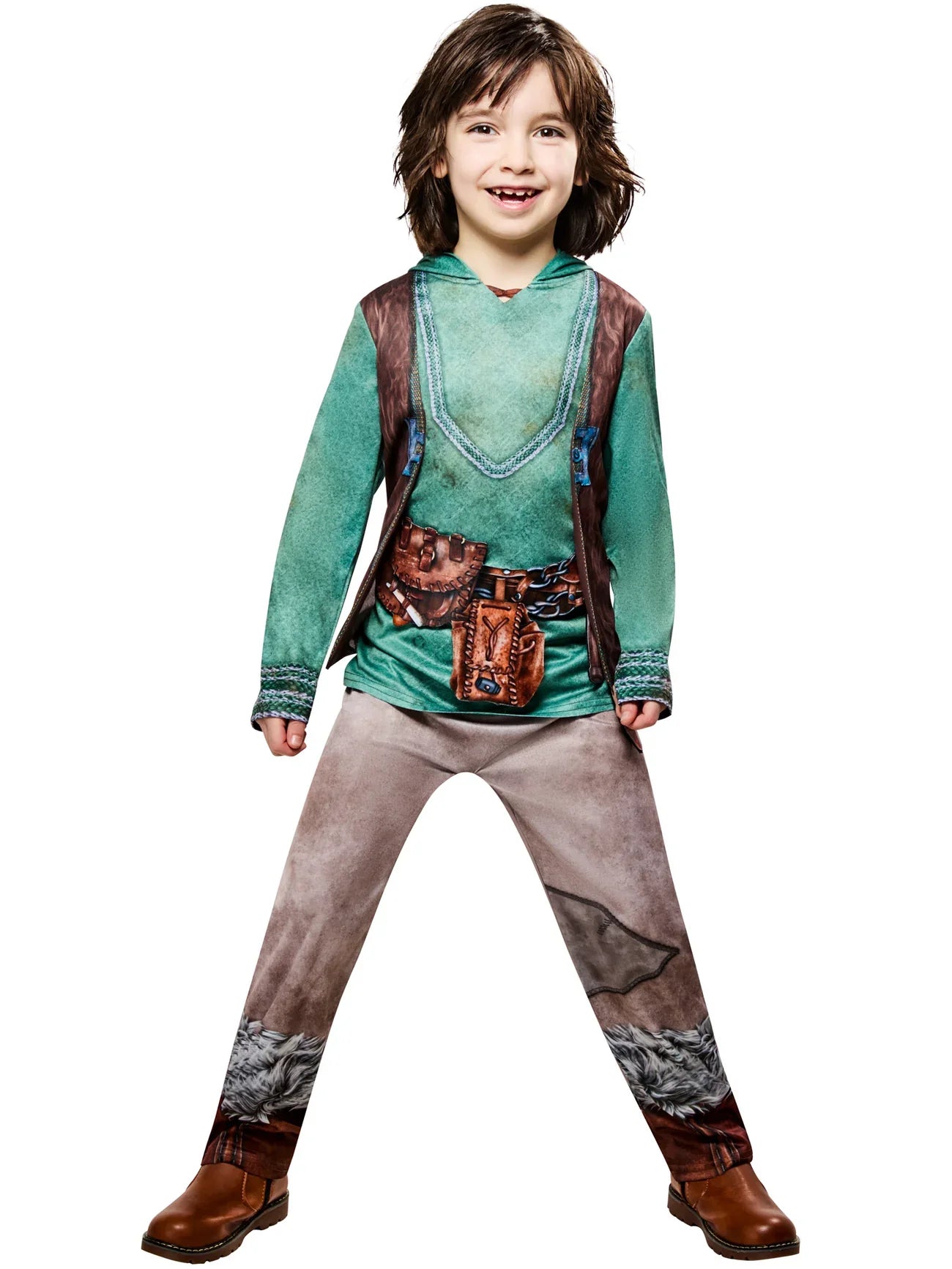 Soar into adventure with this hooded jumpsuit, printed jacket, belt, and fur boot tops inspired by Hiccup's heroic journey. Every detail captures the spirit of Viking valor and dragon-riding mastery.
