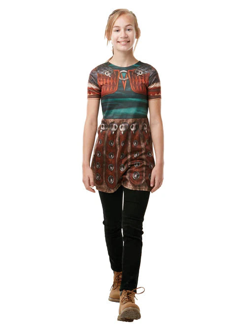 Let your little dragon-slayer stand out with this kids Astrid costume from How to Train Your Dragon: The Hidden World. Featuring a detailed dress and matching leggings, they'll be ready for any adventure!
