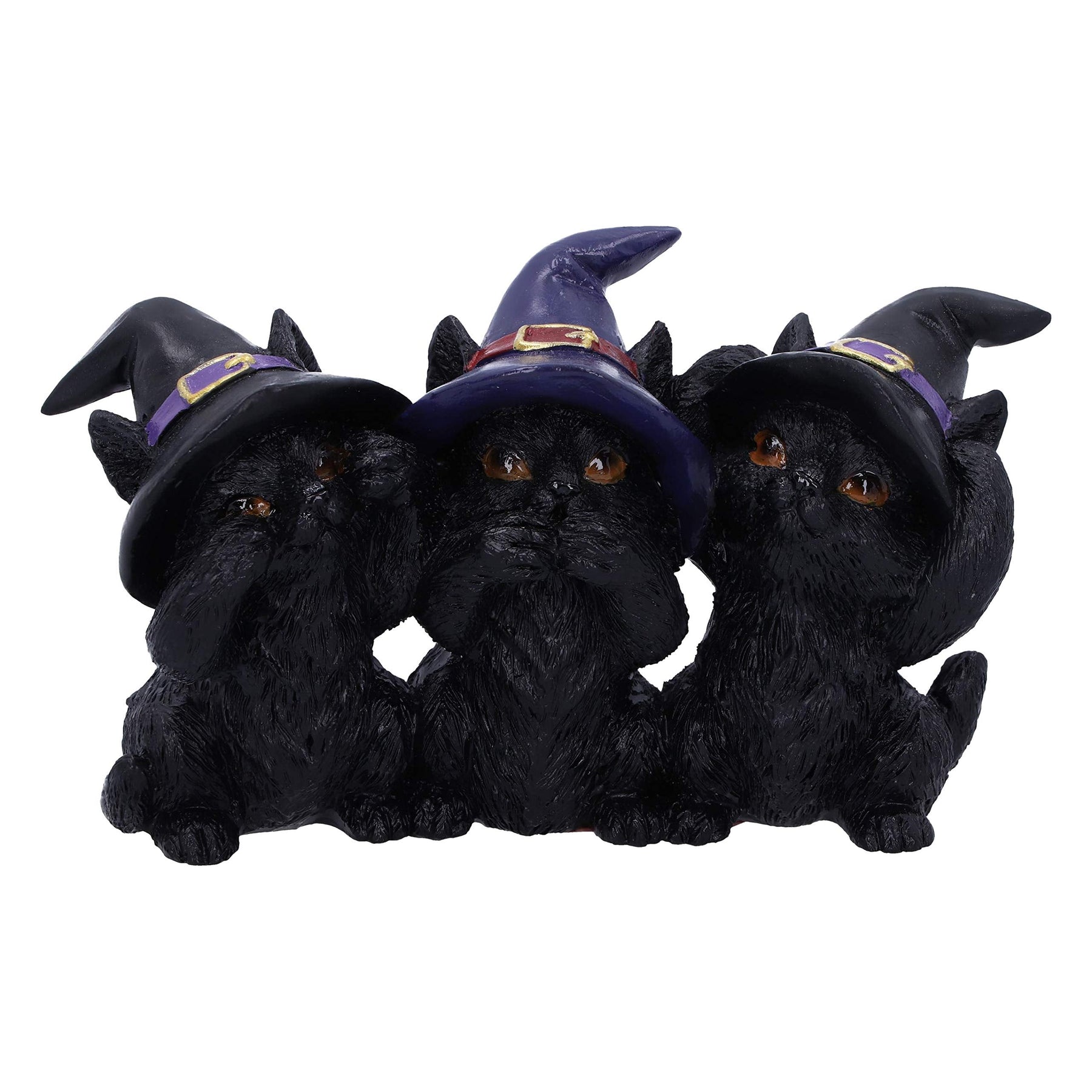 From alternative masters Nemesis Now, these charming cats are is cast in high-quality resin before being painstakingly hand-painted. Sitting side by side with a Witches hat on each of their heads, these three wise kitties look up with adorable eyes. One clasps their paws to their mouth, one blocks their ears, and one covers their eyes, sneaking a peek regardless. These adorable animals are the perfect illustration of Confucius famous maxim: “See no evil, hear no evil, speak no evil†and are the perfect gift for the charming witch in your life.