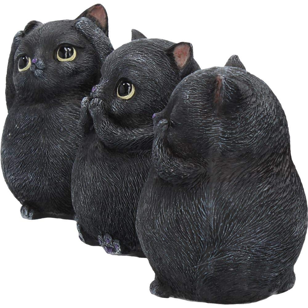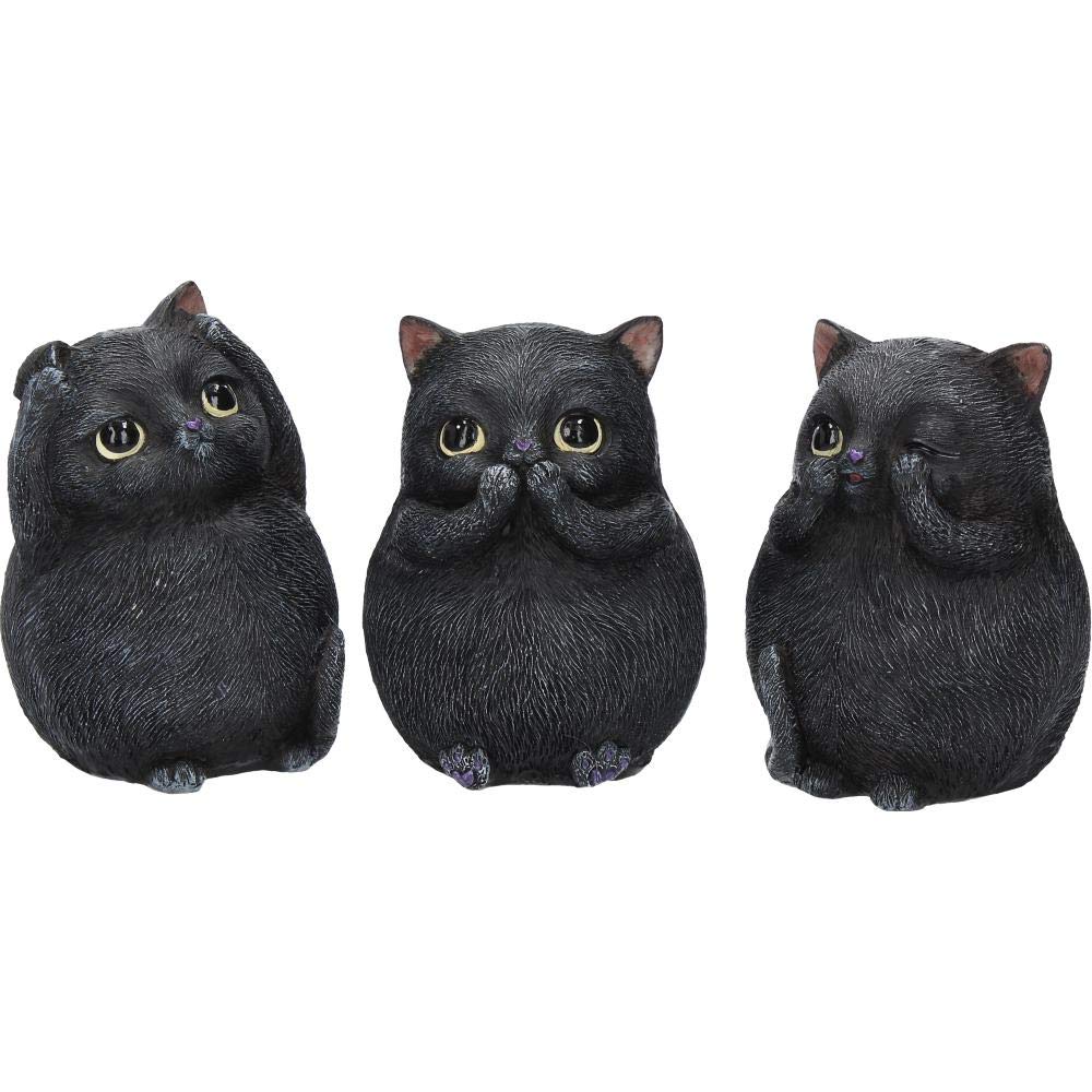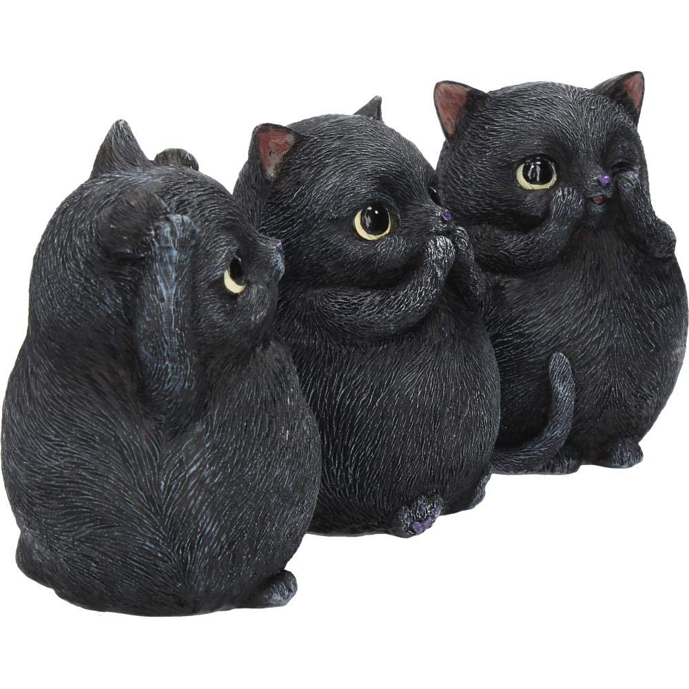 These rotund cats come from imaginations of Nemesis Now's fantastic in-house design team. Sitting side by side, these three wise kitties look up with adorable eyes with purple heart-shaped noses. One clasps their paws to their mouth, one blocks their ears, and one covers their eyes, sneaking a peek regardless. Cast in the finest resin before being lovingly hand-painted, these adorable animals are the perfect illustration of Confucius' famous maxim: 'See no evil, hear no evil, speak no evil'.