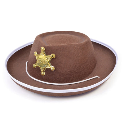 Get ready for some wild west fun with this Cowboy Brown Felt Childs Hat! Perfect for little cowboys and cowgirls, this hat features a classic cowboy style with a touch of playful white trim, a cool cord, and a cowboy badge on the front. And the best part? It comes in just one size, perfect for any little wrangler!