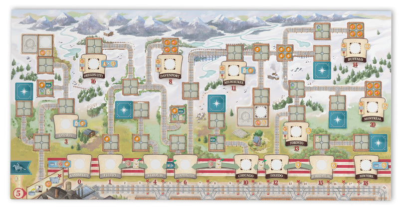 Great Western Trail: Rails to the North expansion for the "Great Western Trail" board game. This expansion introduces new gameplay elements, including a northern railway system, additional components, and enhanced strategic options.