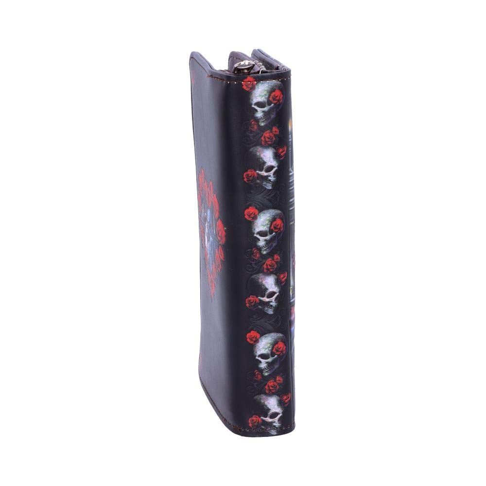 From the untamed imagination of Anne Stokes, this embossed purse was created by Nemesis Now. Next to the Ofrenda of her one true love, this brown-haired beauty gracefully stands. Waiting for the Day of the Dead to arrive so that she can be reunited with her partner, the time has now come as a ghostly figure stares lovingly at her face, hands entwined. Their love still as strong as the day they met, transcending the otherworldly realms. The beautiful embossed detailing enhances the magic and creates a striking 3D effect while the large compartments make it a wonderfully practical piece.