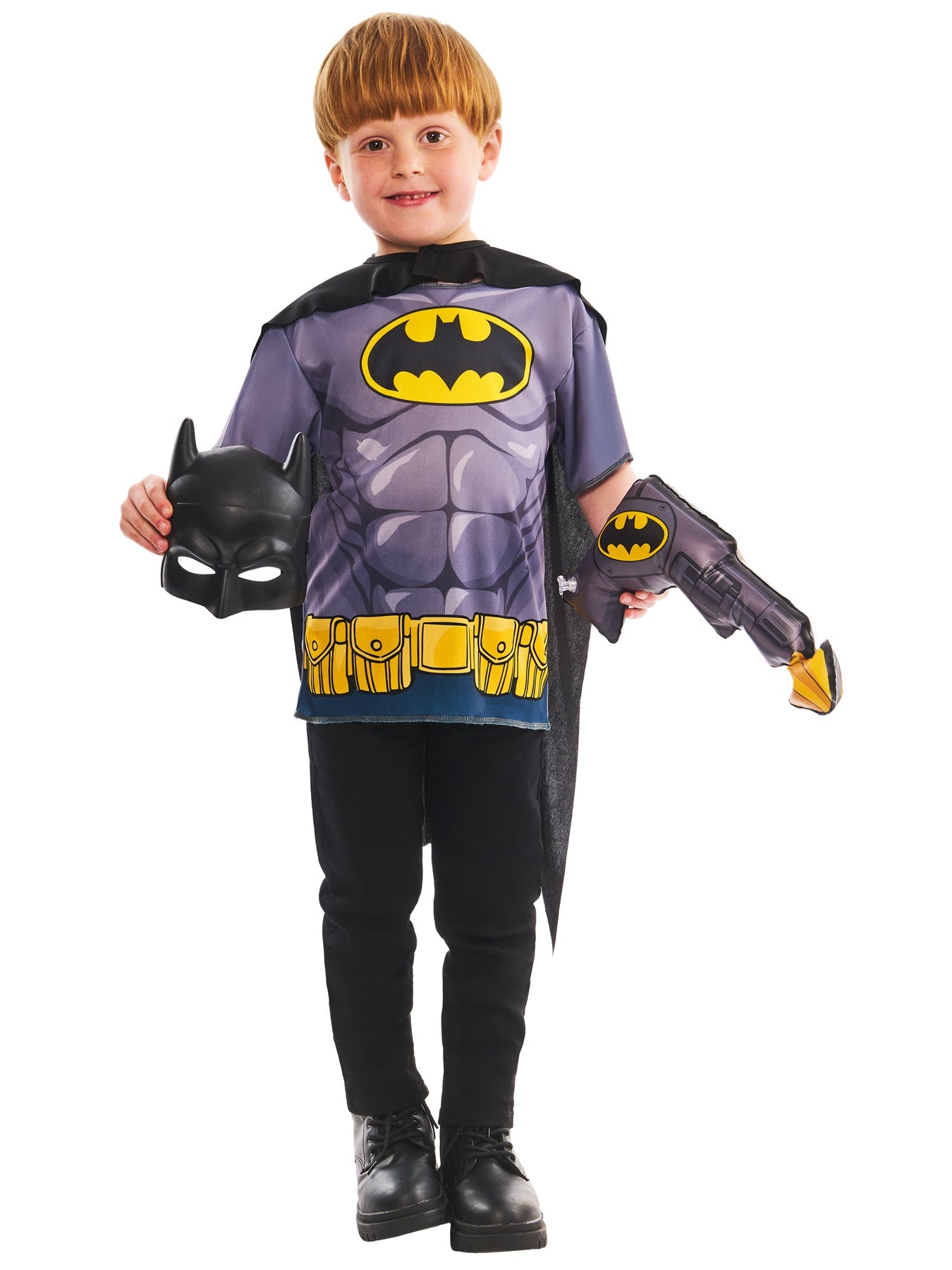 Let your little hero transform with Rubie’s officially licensed Batman Dress-Up Gift Set with batman cape, mask, tee & inflatable grappling gun for epic play!