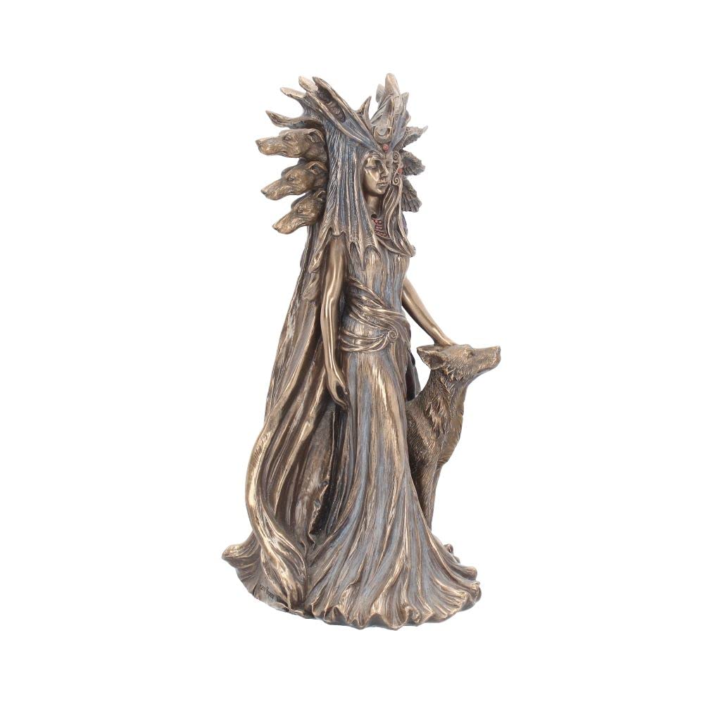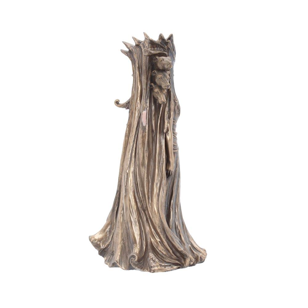 Cast in the finest resin before being given a bronzed finish, this mystical Goddess comes from alternative brand Nemesis Now's giftware collection. Hecate is a Goddess in ancient Greek religion and mythology, most often associated with crossroads, entrance-ways, light, magic, witchcraft, knowledge of herbs and poisonous plants, ghosts, necromancy, and sorcery. Here she is depicted as a singular being, surrounded by her dogs. Dogs were a common sacrificial animal in rites to invoke the Goddess, and the sacrificed dog was often eaten, but some theories hold that Hecate's dogs were actually shades or demons.