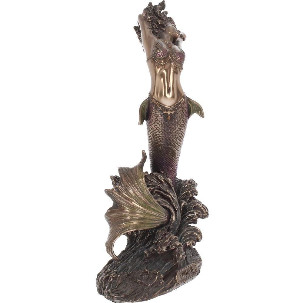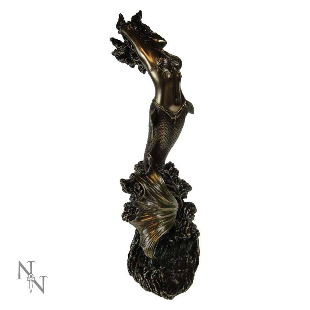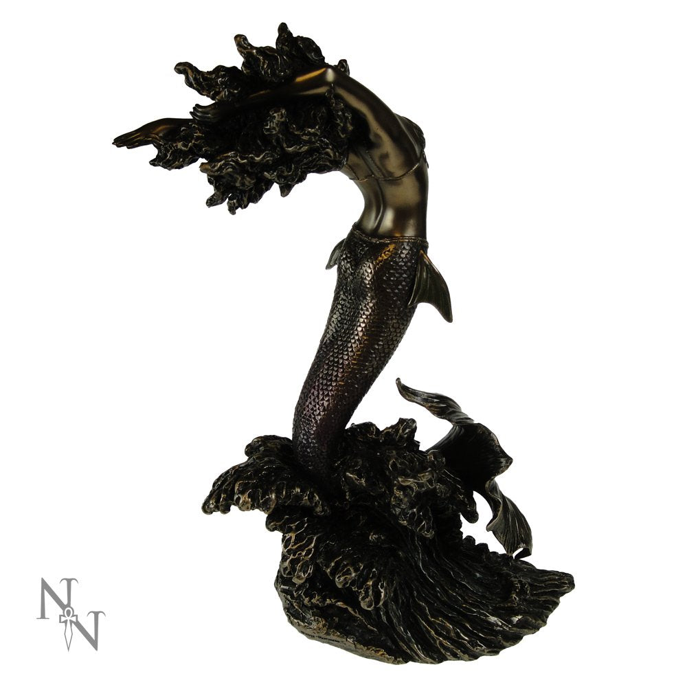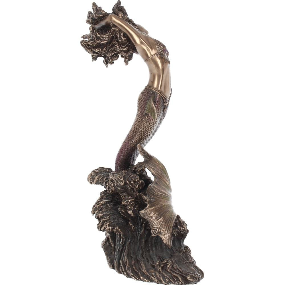 From alternative brand Nemesis Now, this mystical figure depicts Yemaya, the Goddess of The Ocean. Leaping out from beneath the waves, Yemaya is half woman and half marine creature. As all life is thought to have begun in the sea, all life is said to have begun with Yemaya. She is motherly and strongly protective, and cares deeply for all her children, comforting them and cleansing them of sorrow. Cast in the finest resin before being given a bronze finish, this figure would make a wonderful addition to any home.