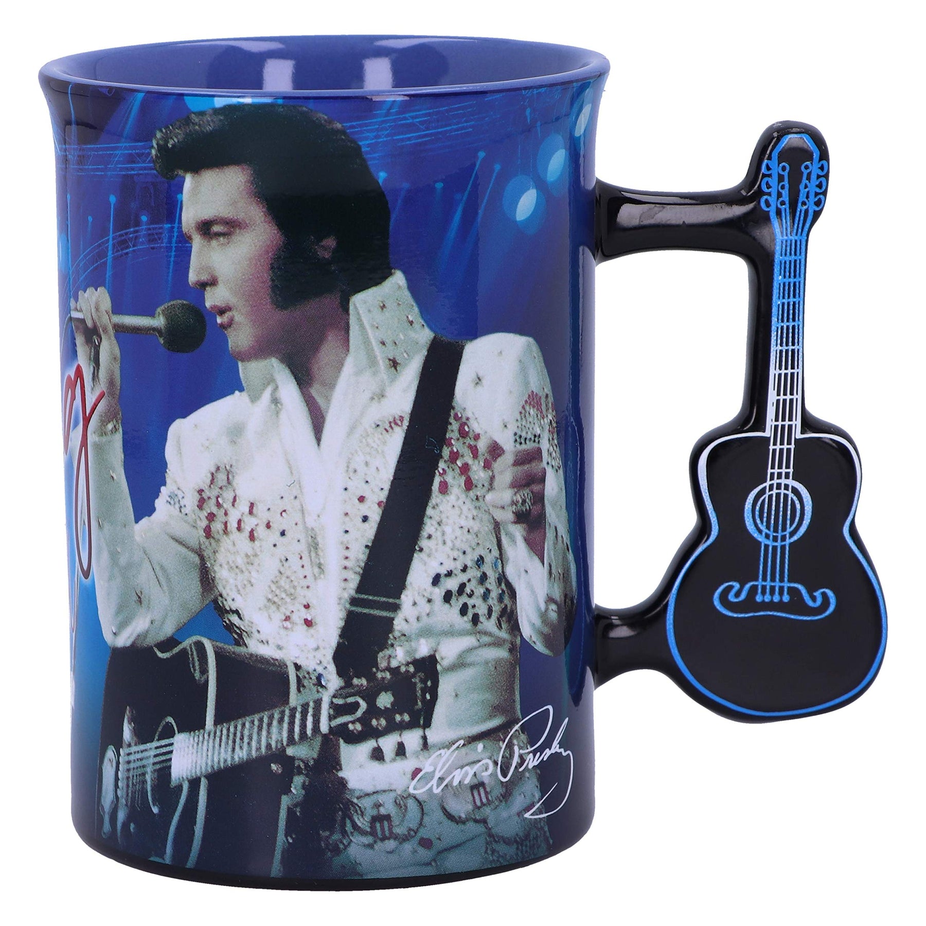 Drink your morning coffee, with the King, from this beautifully designed mug from alternative brand Nemesis Now's giftware collection. Featuring an image of the King, Elvis Presley, it also comes with a handle that is formed from a sketch of an acoustic guitar. The words emblazoned on the mug proclaims 'The King of Rock 'n' Roll'. Let the king live on and make an Elvis fan very happy today!