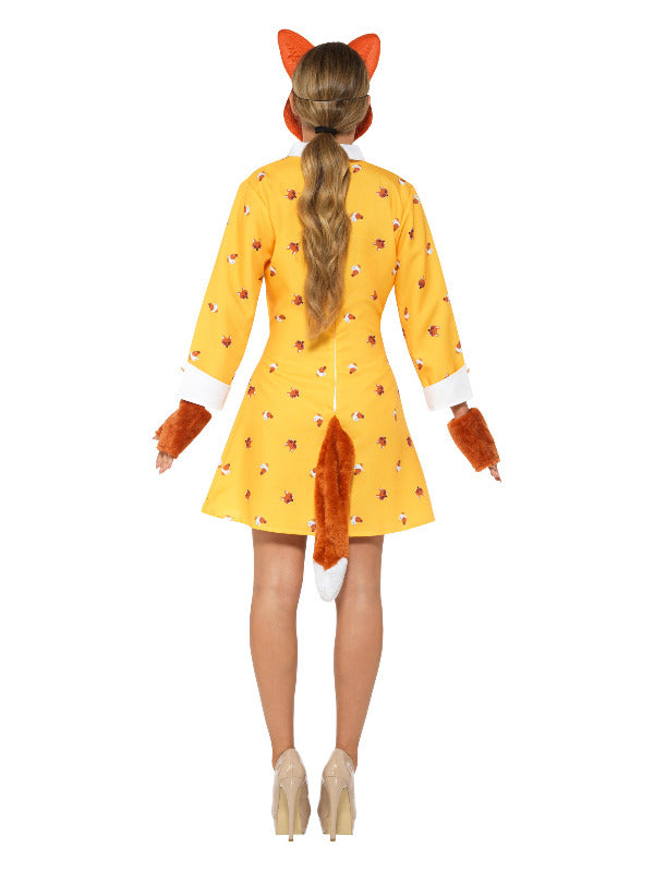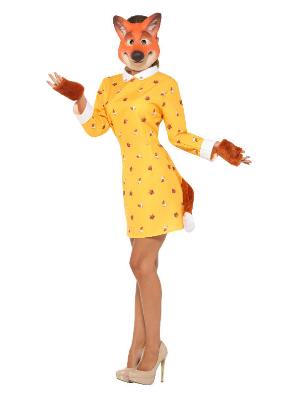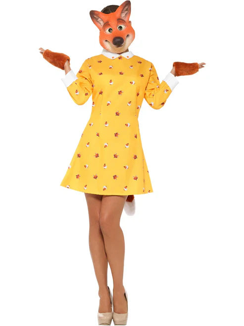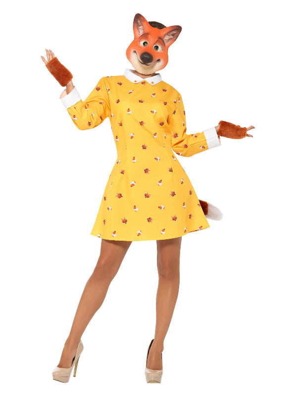 Step into the spotlight with the Fantastic Lady Fox Costume, a yellow fantastic miss fox outfit designed for women who want to make a memorable impression on World Book Day. This women’s dress features an attached tail that adds playful charm and completes the fox-inspired look. Included are matching gloves that enhance the costume’s cohesive style, along with a lightweight EVA fox mask that captures the essence of the lady fox character.