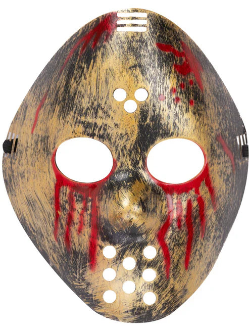 Get ready to spook with this Bloody Metallic Hockey Mask, complete with elastic straps for a secure and comfortable fit.