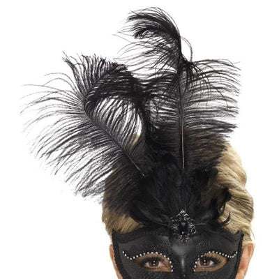 Going To A Masquerade Ball? Don't Forget To Accessorise Your Costume With This Stunning Adult Women's Baroque Fantasy Eyemask In Black With Luxurious Feathers and Silver Diamante Detailing Around The Eyes. Now Try Not To Loose Your Glass Slipper!