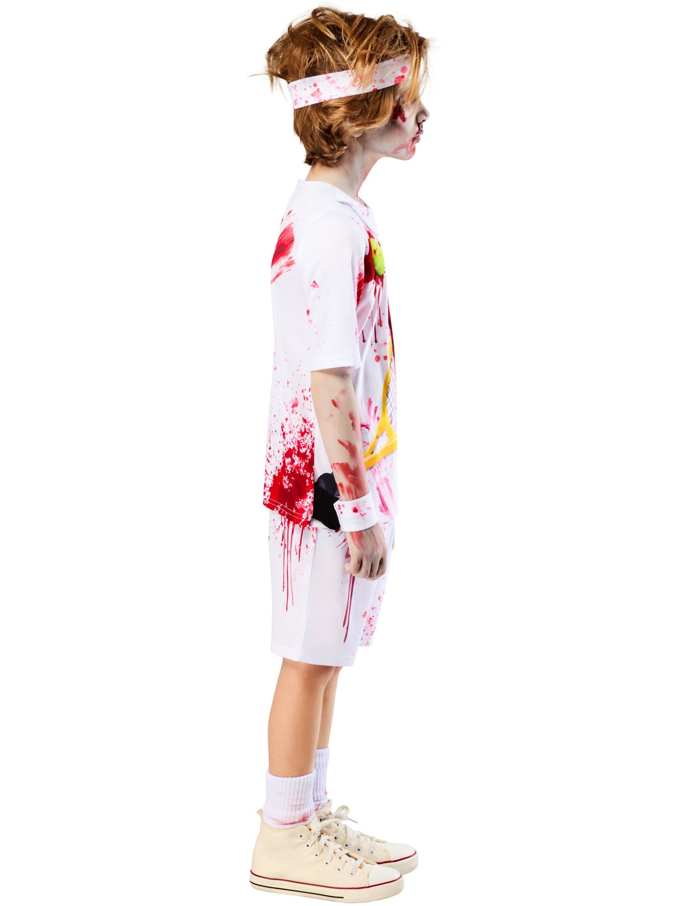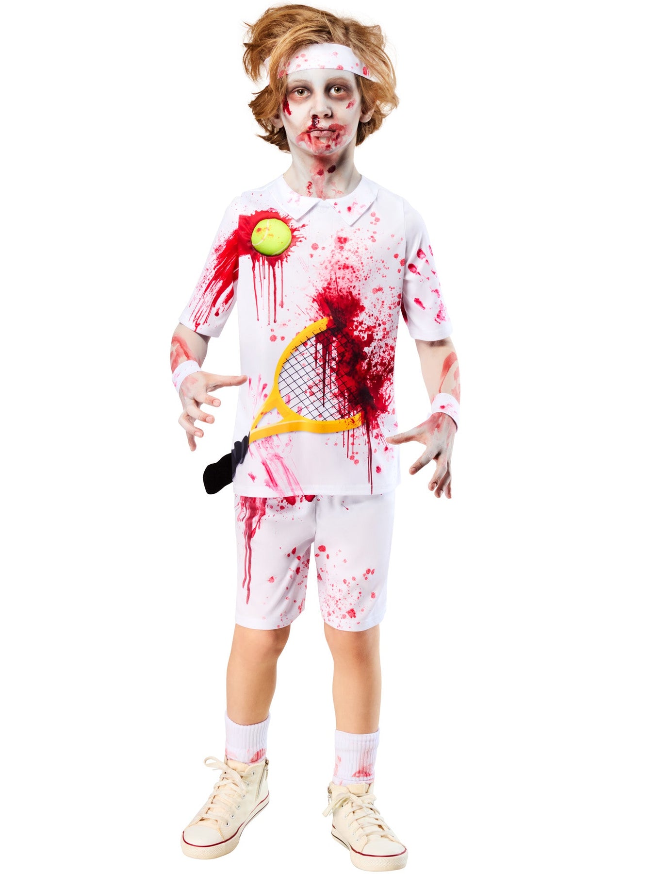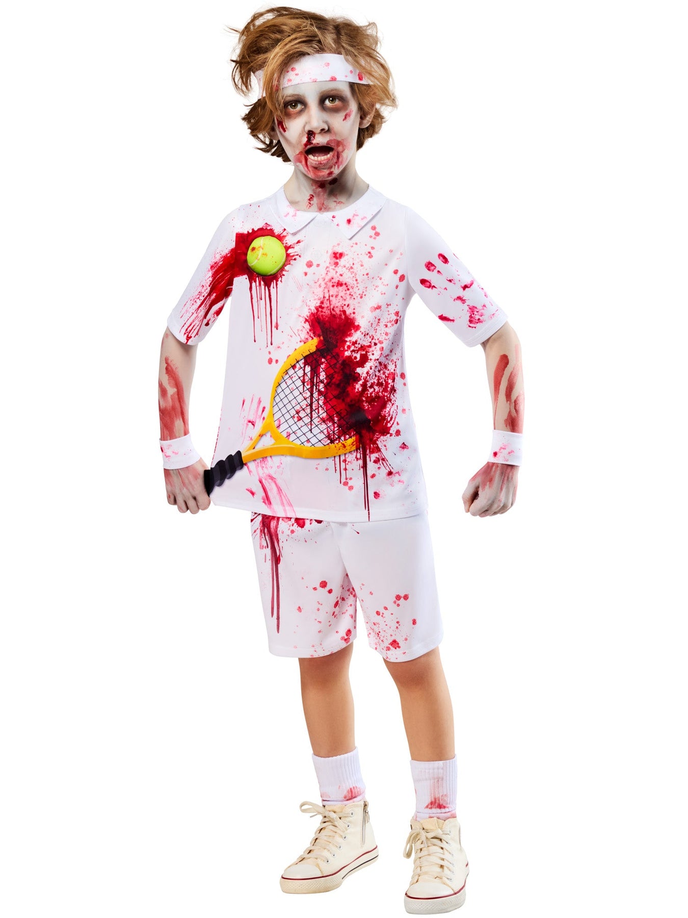 This funny Halloween tennis costume set combines sporty elements with zombie-themed details, perfect for kids seeking a unique and spooky outfit.