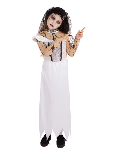 This brilliant Zombie bride costume is the perfect choice for your Halloween party or themed event. The kids Zombie Bride outfit includes a dress and Headpiece.