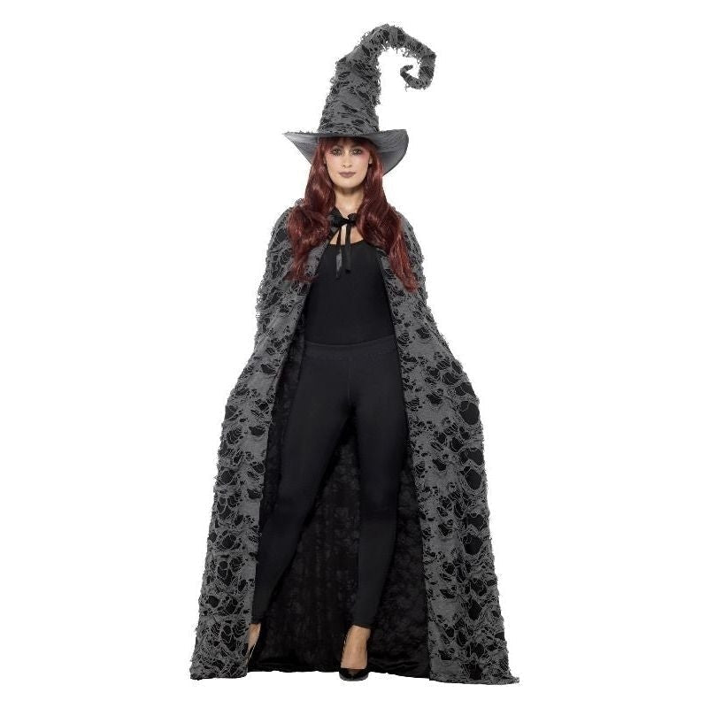 This Brilliant Deluxe Spell Caster Cape Is Ideal For Anyone Looking To Dress As A Spellbound Wizard Or Witch This Halloween! It's Grey and Black With A Distressed Design. Ideal For Halloween and Suitable For Men and Women.