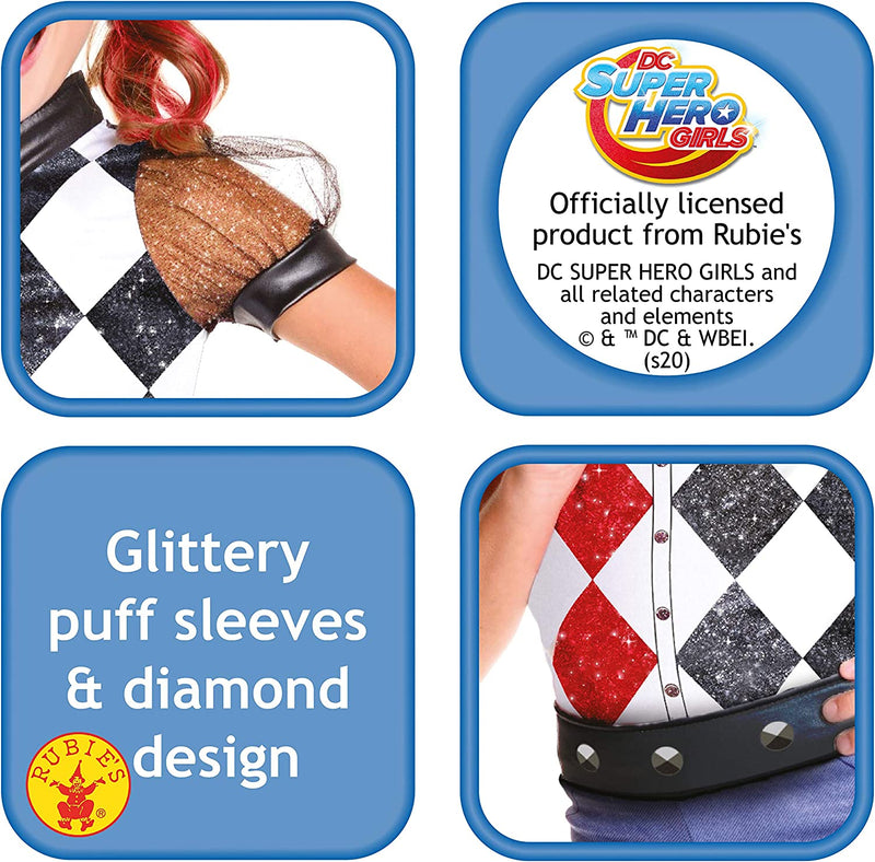 Harley Quinn is one of the most popular female characters from the DC Comics universe, particularly since the release of the Suicide Squad movie. This costume will help any young girl wanting to dress as this fun character from the DC Superheroes Girls web series. This is a licensed DC Comics Harley Quinn Costume.
