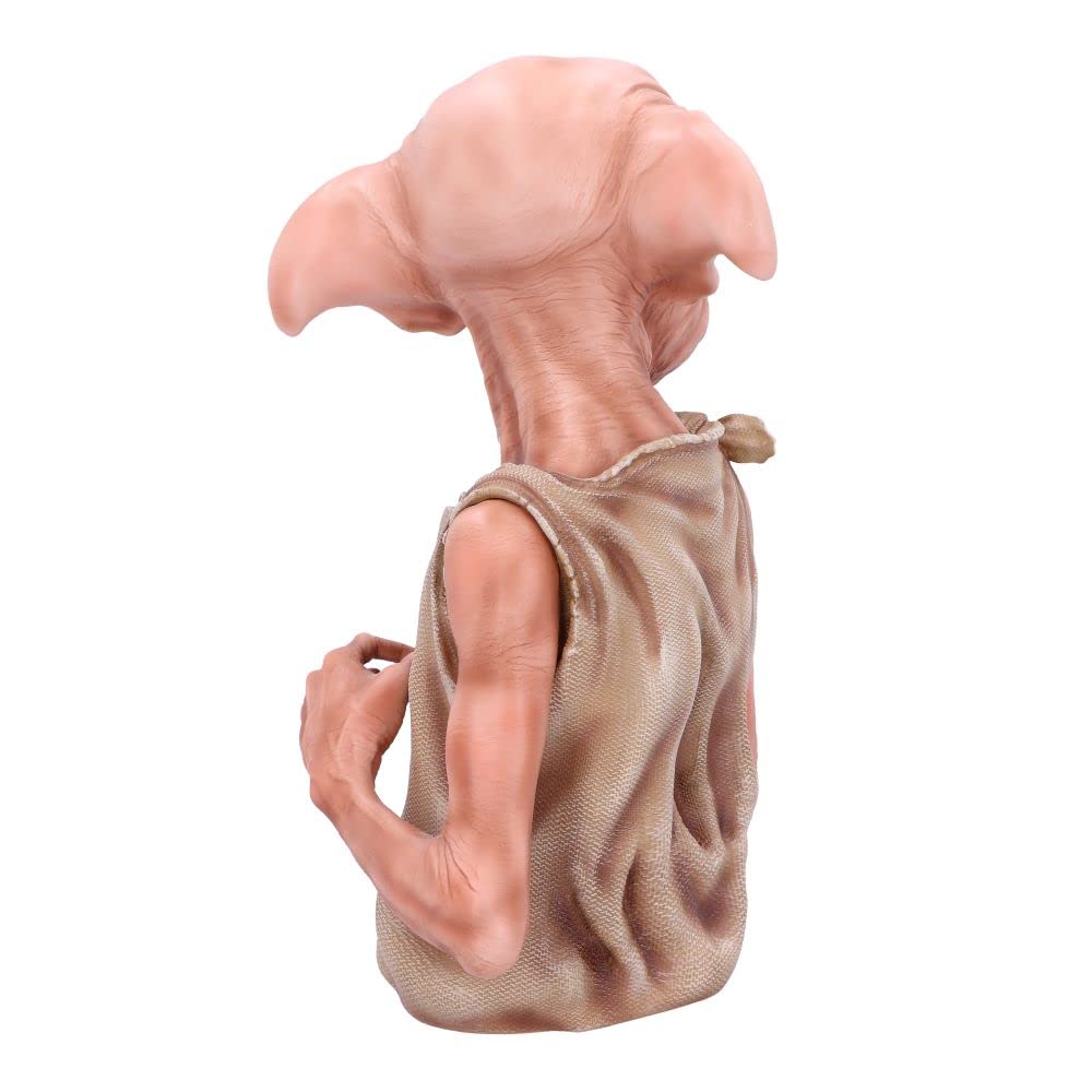 Discover the Wizarding World with this officially licensed Harry Potter Dobby Bust. Known for being a loveable house elf and devoted friend to Harry Potter. Dobby can be seen looking over his shoulder, dressed in an old pillow case and gripping onto the sock which granted him freedom from the Malfoy's. Cast in the finest resin before being expertly hand-painted, this piece is perfect for any Witches, Wizards or Muggles alike!