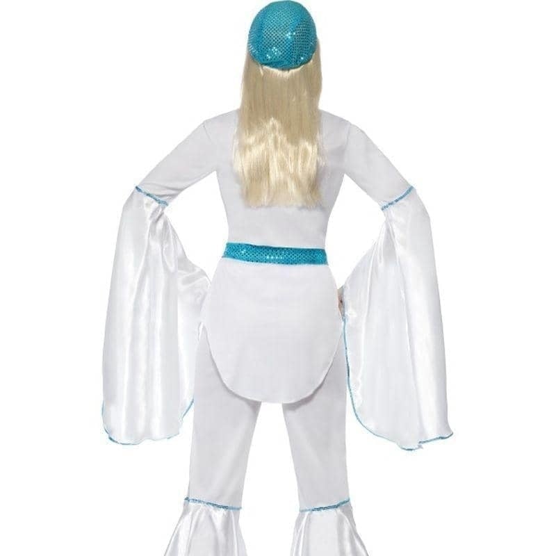 Be the ultimate dancing queen and exclaim "Mamma Mia!" in this unforgettable Abba-inspired Super Trooper Costume for adults. The set includes a white top, flared trousers with blue accents, a hat, and a belt tie, capturing the iconic look from the classic hit, Waterloo. This costume is a party essential that will have all eyes on you. Channel your inner 70s superstar with our vibrant white and blue outfit, perfect for embracing a retro pop singer vibe.