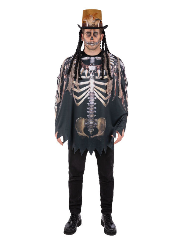Step into the mysterious world of voodoo with this Voodoo Witch Doctor Poncho, designed for adults in one versatile size. Featuring a striking skeleton print, this poncho adds a playful yet spooky touch to your Halloween Voodoo Witch Doctor costume collection.