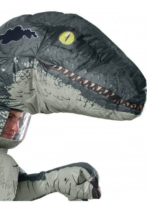 Get dressed up in this Inflatable Velociraptor costume Simply put some batteries into the fan and watch it inflate around you as you become one of the most fearsome dinosaurs in existence! Straight out of the Jurassic Saga of films from Universal, you'll be dressed the most roar-some out of all of your friends!