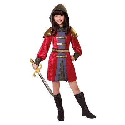 This brilliant Kids Girls Knight Princess Historical Medieval Fancy Dress Costume is a must-have for any little one looking to dress as a brave knight this World Book Day! This adorable Knight Princess Costume comes complete with a Red and Blue Dress with Gold Shoulder Pad Deatils, Buckle Print and Matching Chainmail-like Hood to finish off the look. It's a ideal for World Book Day!