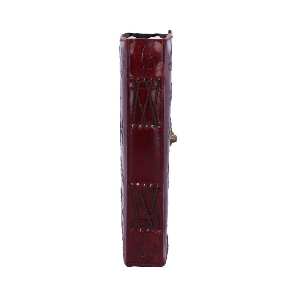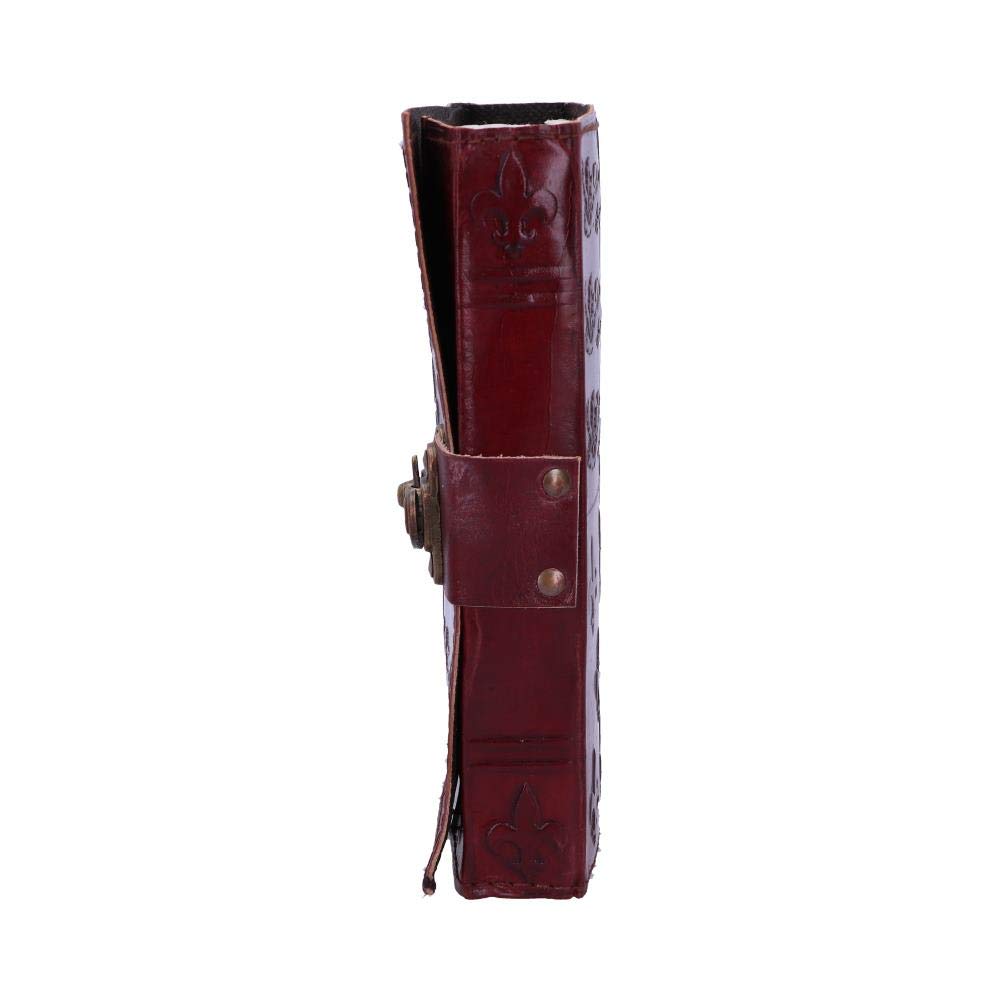 The cover of this journal shows the English royal coat of arms, in two opposite corners are the three lions synonymous with England next to them are five fleur de lis used in the French royal coat of arms. In 1340, Edward III laid claim to the throne of France, and thus adopted the adopted the royal arms of France alongside the royal arms of England, creating this quadrant design. This vintage journal is made of high-quality paper and has a red leather-bound front cover that features a brass metal clasp, locking the journal closed.