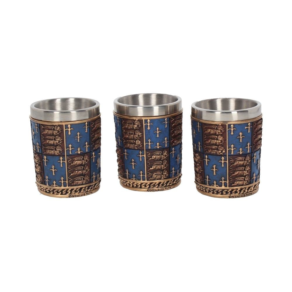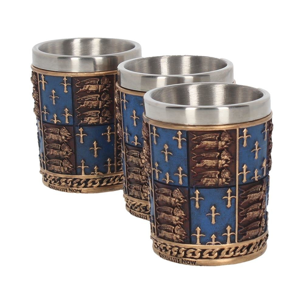 Show your noble roots with these fantastic Medieval shot glasses, created by alternative brand Nemesis Now. This shot glass bears a coat of arms type design, similar to the royal standard of Henry IV. Cast in the finest resin before being carefully hand-painted, these shot glasses are ideal to show your royal blood at any gathering.