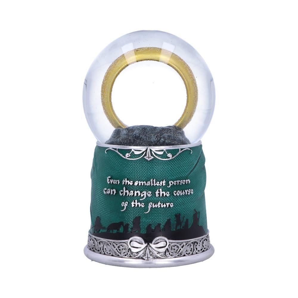 The base of this beautifully crafted snow globe is formed by Frodos green cloak, the front of his brown buttoned blazer above his off-white shirt. The iconic Leaf of Lorien is placed just below the upper rim and forms the perfect centrepiece. On the reverse it is emblazoned with the quote “Even the smallest person can change the course of the futureâ€. Within the globe the One ring takes centre stage, encircled by inscription translating to ‘One Ring to Rule Them All. This exquisitely designed piece is cast as well as the finest ‘Elvish resin before being expertly hand-painted.
