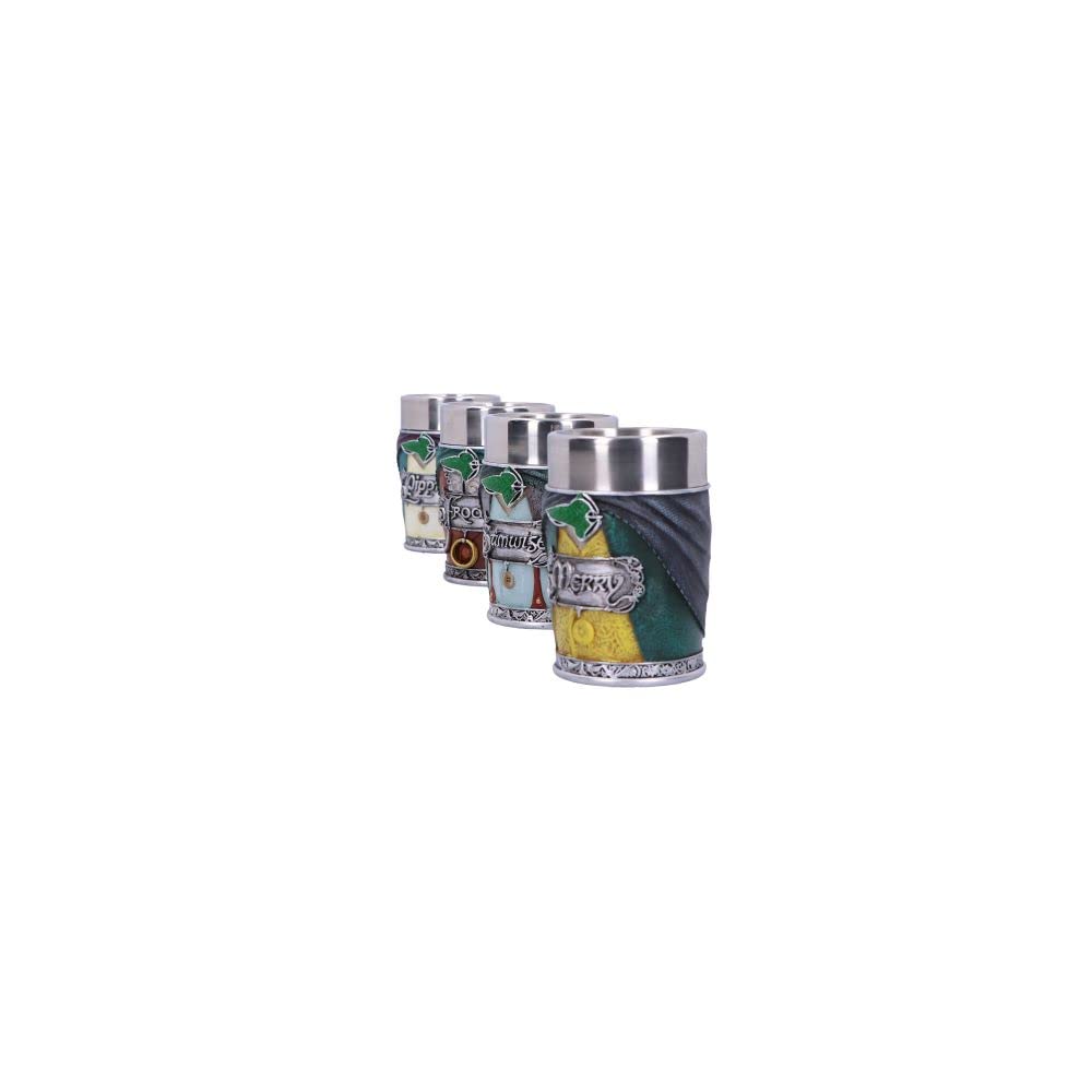 Featuring the iconic clothing from each of the four Hobbits, these Shot Glasses are the perfect way to embrace the Shire while enjoying your favourite tipple. Each emblazoned with the corresponding name (Frodo, Samwise, Merry and Pippin), below their Leaf of Lorien brooches, these exquisitely designed pieces are cast as well as the finest ‘Elvish resin before being expertly hand-painted.