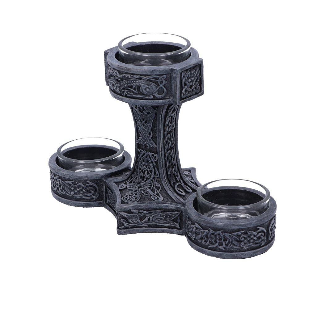 This Thors Hammer Tea Light Holder is the hammer of the thunder god, Thor, used as a deadly weapon and also as a way of providing blessings. The hammer was also worn as a pendant to those living in the Viking Age in the Scandinavian culture and in modern times to adherents of modern Heathenry. Cast in the finest resin before being expertly hand-painted, Thors Hammer can hold 3 tealights, perfect for lighting up your space.