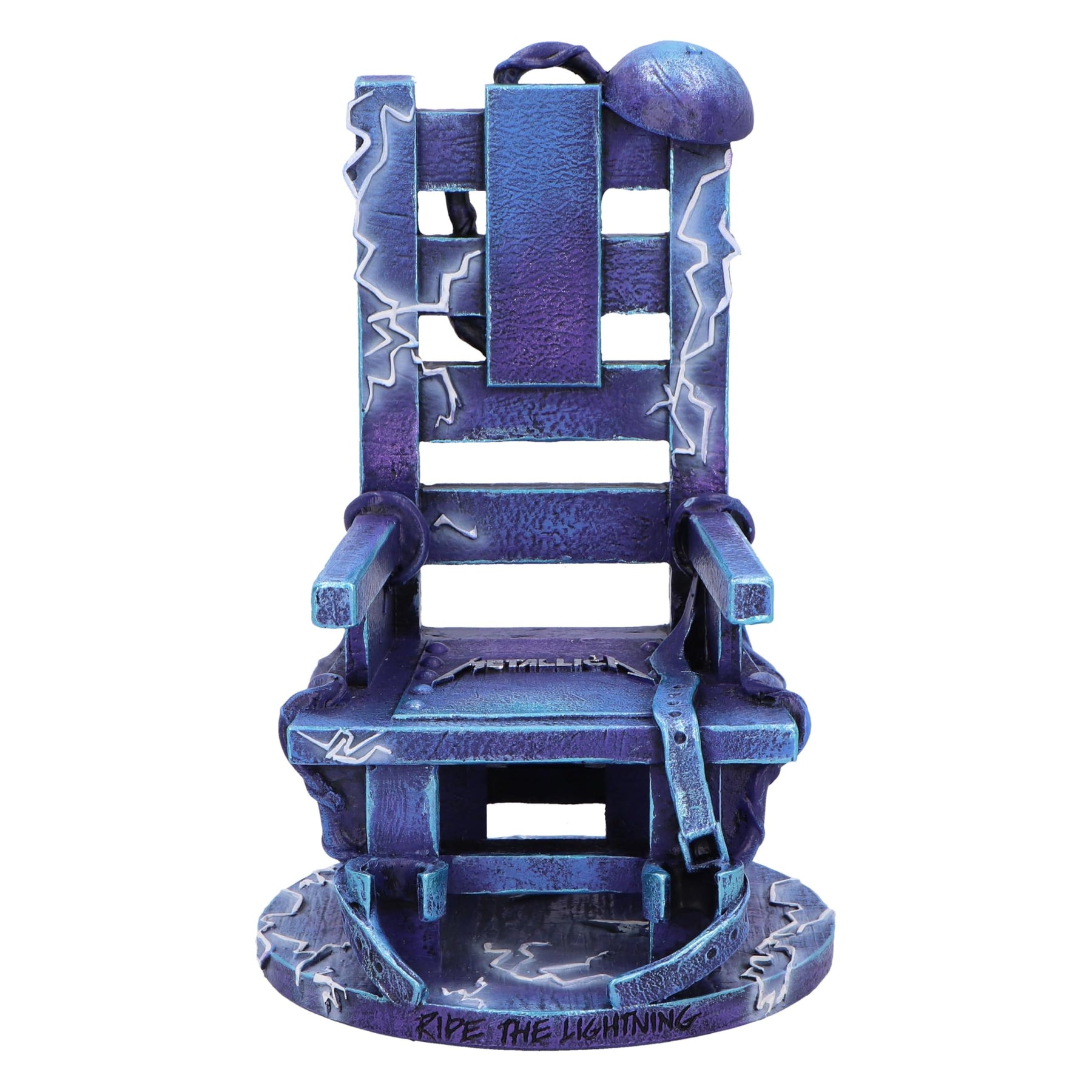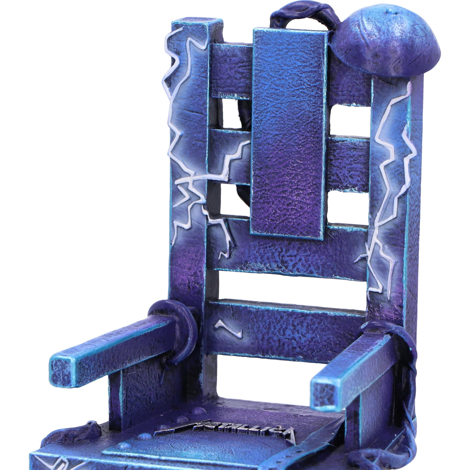 - Inspired by Ride the Lightning Album: This unique piece features a striking blue electric chair adorned with the bold Metallica logo at its center