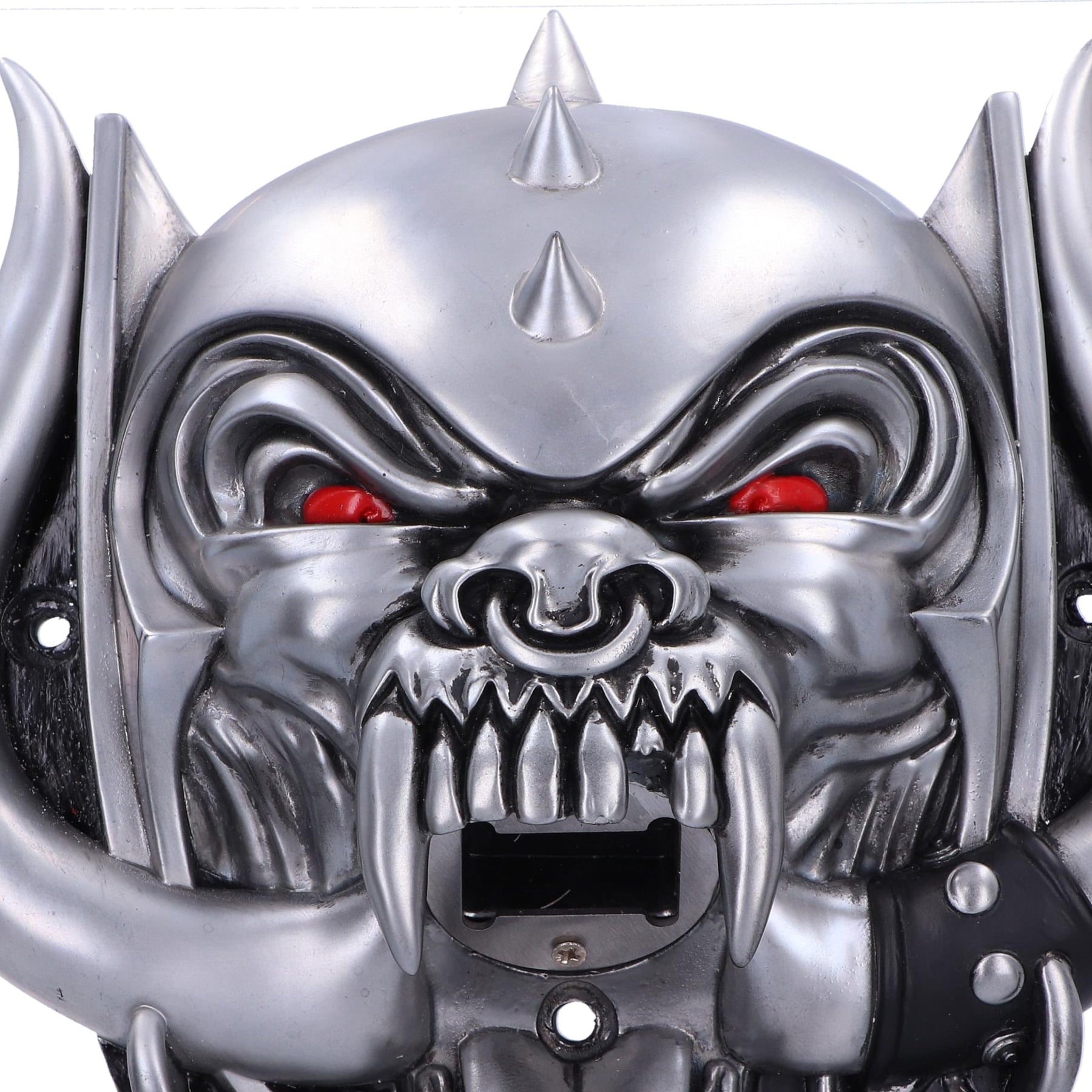 Celebrate the towering sound of Motorhead with this officially licensed Warpig Bottle Opener. Bearing their iconic mascot, the fearsome War Pig whose deep-red eyes stare ahead unblinkingly whilst a bottle opener sits below its piercing teeth. Cast in the finest resin before being carefully hand-painted, this intimidating icon of rock is the perfect way to display your love of Rock and Roll.