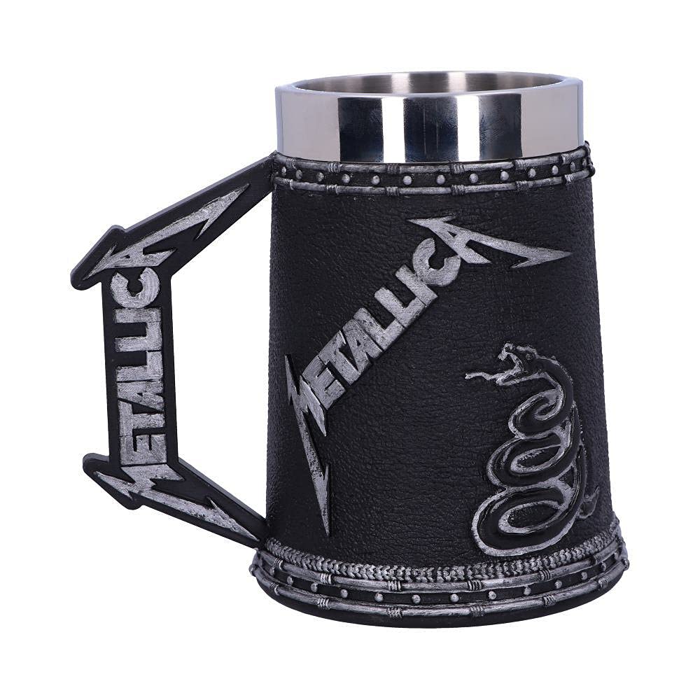 Have your favourite Metallica album artwork on display at all times with this exquisite tankard from alternative brand Nemesis Now! Featuring the understated artwork from their self-titled fifth studio album, the Metallica logo sits above a coiled snake on a black background. The logo is mirrored in the handle of the tankard, which is cast in the finest resin before being expertly hand-painted. This piece comes with a removable stainless steel insert and is the perfect way to pay homage to one of the most influential heavy metal bands of all time!