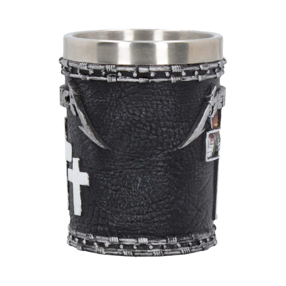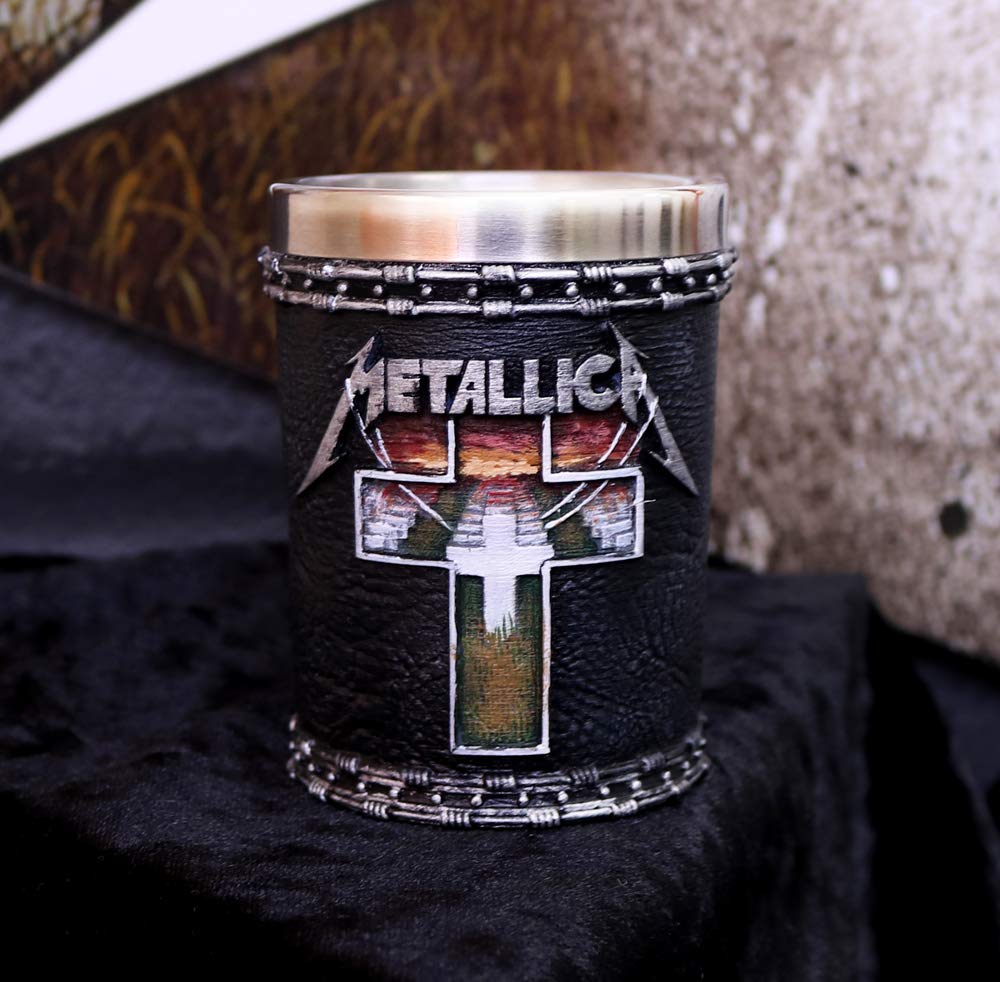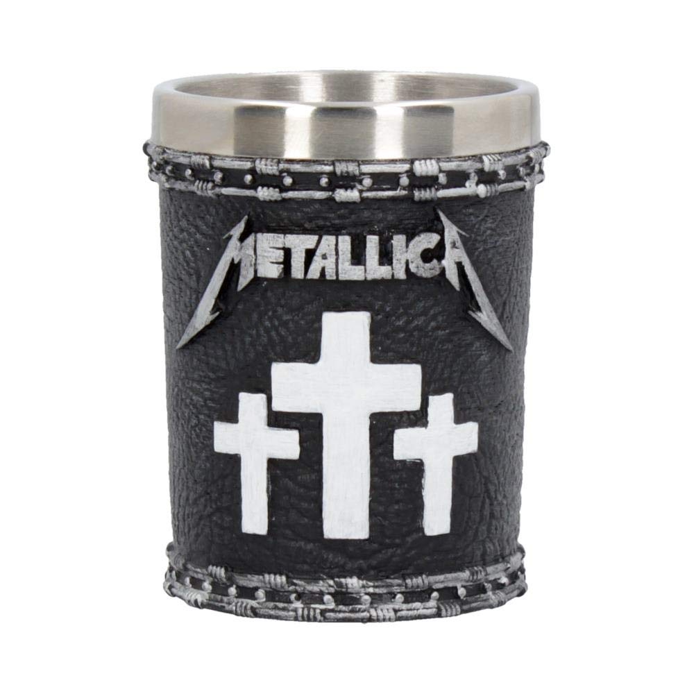 Have your favourite Metallica album artwork on display at all times with this exquisite shot glass, created by Nemesis Now! Featuring the understated artwork from their third studio album, it shows military-style graves stones lined up in neat rows in the centre of a white cross. Each stone is attached to strings leading to the Metallica logo. Cast in the finest resin before being expertly hand-painted, this piece comes with a removable stainless steel insert and is the perfect way to pay homage to one of the most influential heavy metal bands of all time!