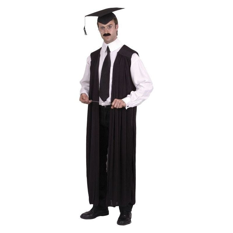 Pair this teacher’s gown with a mortarboard hat and glasses to complete the authoritative academic look. Perfect for teachers, professors, wizards, and headmasters in any costume setting!