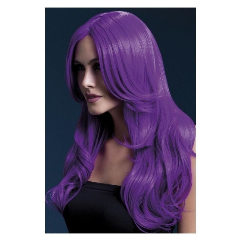 Unleash your bold side with the Neon Purple Long Wavy Fever Khloe Wig! This stunning 66cm wig is perfect for adding a vibrant, dramatic touch to any look. Designed with a sleek centre parting and soft, cascading waves, this high-quality wig delivers a glamorous and natural finish.