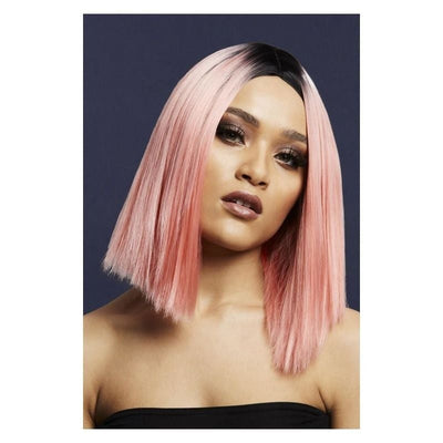 Fever Kylie Wig, Two Toned Blend, Coral Pink, Inverted Long Bob, Centre Parting, 37cm/ 15in