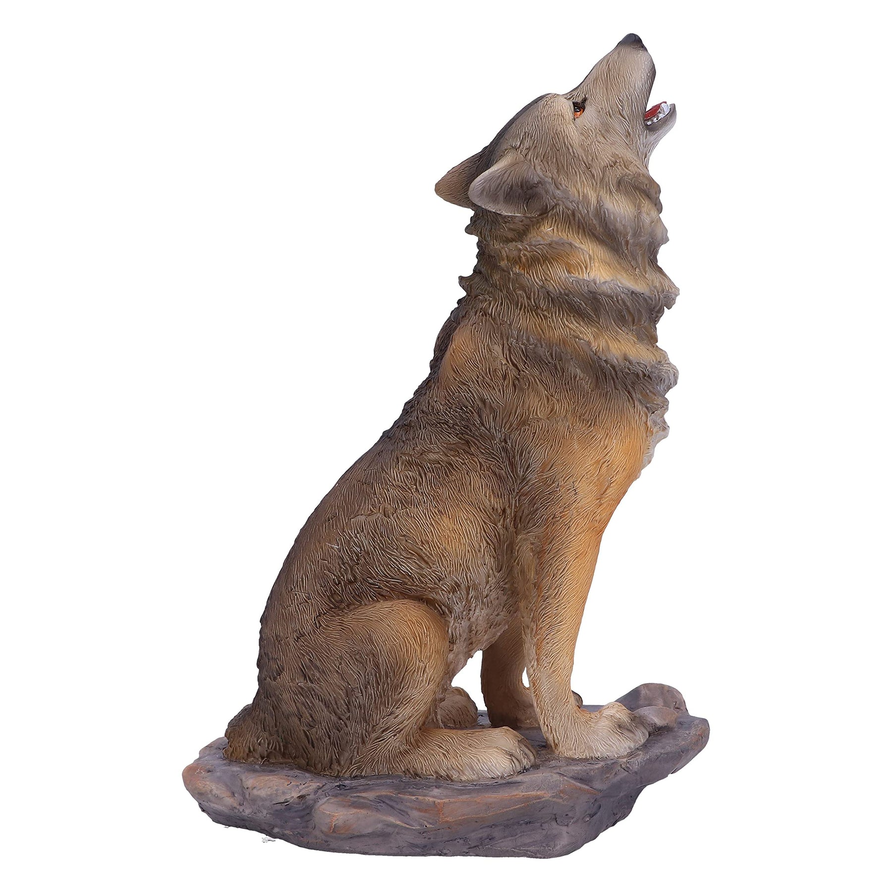 This enchanting wolf figurine will bring the wild into any home. Sitting on a rocky outcrop, this imposing grey wolf stares to the sky with fierce orange eyes while calling their pack. Their stare betrays a preternatural intelligence and wisdom, signalling that this is no ordinary wolf. Cast in top-quality resin before being lovingly hand-painted, this figure is perfect for anyone who feels at one with the wild.