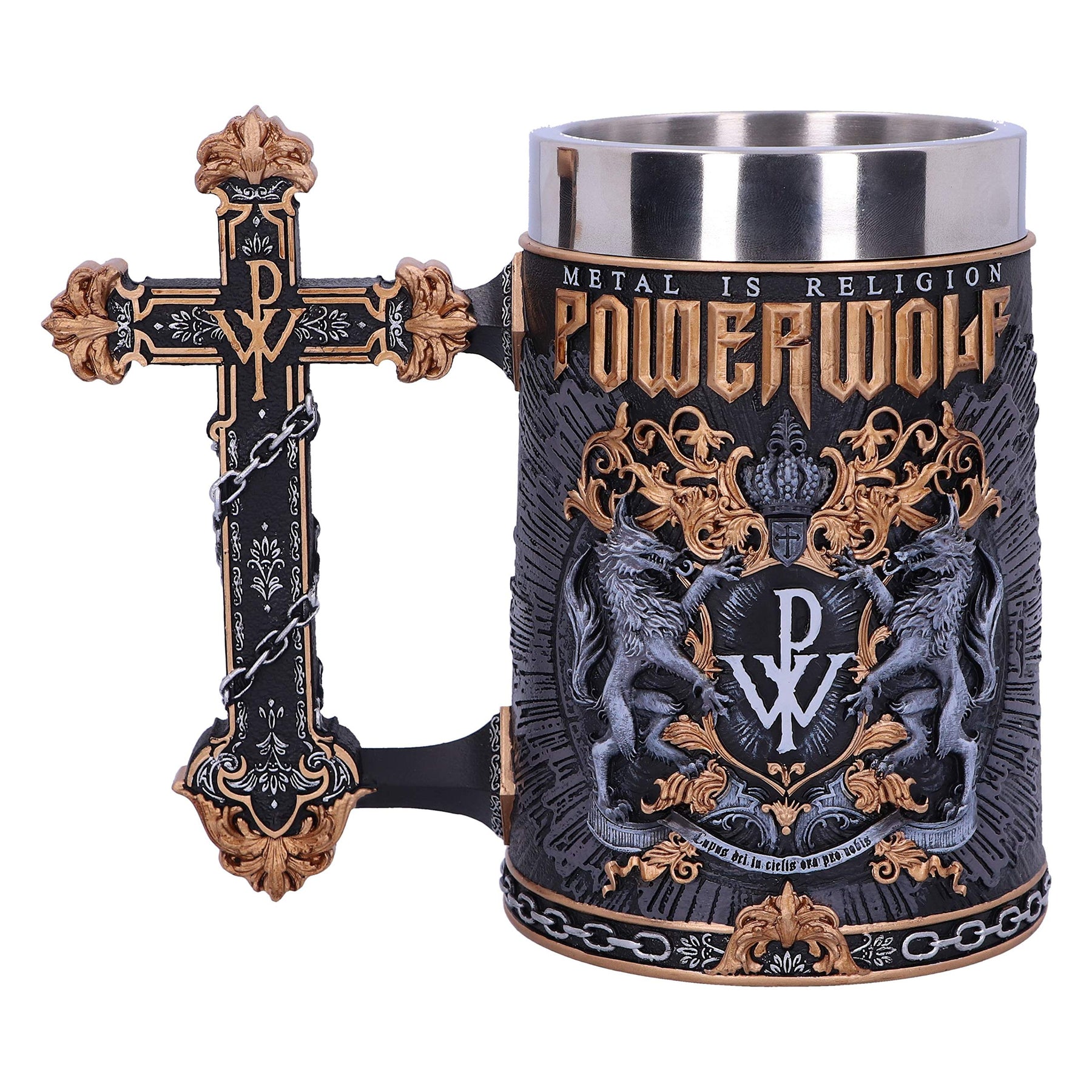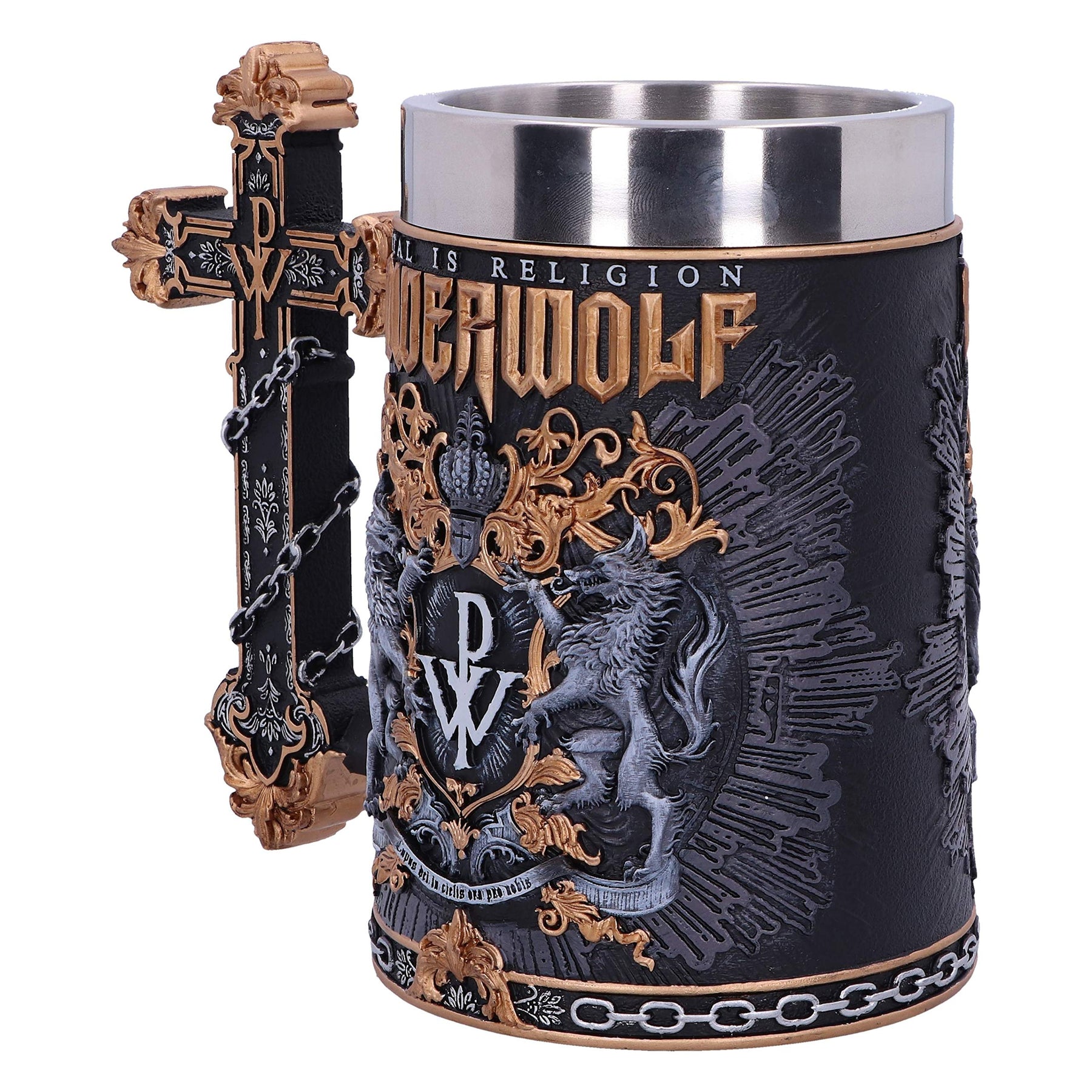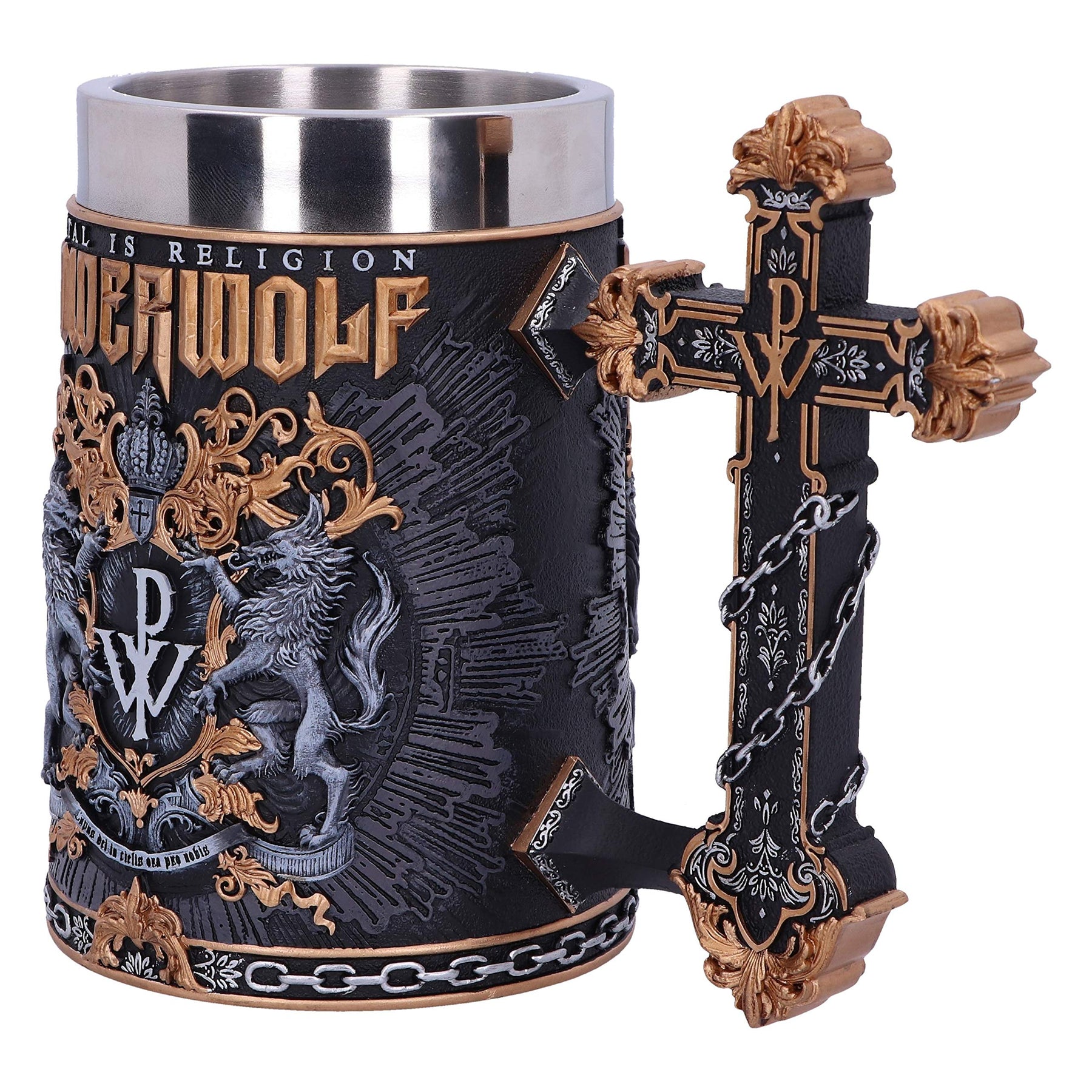 Join the Army of the Night and bang your heads to Heavy Metal masters Powerwolf, with this officially licensed tankard! Detailed in Gold and emblazoned with their 'Metal Is Religion' coat of arms, this tankard has been cast in the finest resin before being expertly hand-painted and features a stainless steel insert for ease of cleaning. It's never been easier to show your unwavering loyalty to these German storytellers with alternative brand Nemesis Now's collection of Powerwolf merchandise, painstakingly designed by thier very own demonic wolf pack.