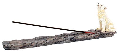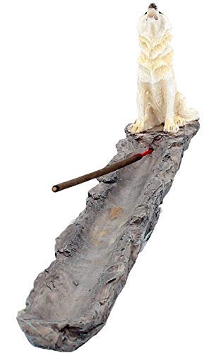 From alternative brand Nemesis Now, this enchanting incense holder will bring the wild into any space. Sitting on a rocky outcrop, this imposing white wolf stares to the sky with fierce orange eyes while calling their pack. The rocky ground extends, forming the tray for the dropping incense, while there is a small hole below the wolf's paws where the stick can be inserted. Cast in top-quality resin before being lovingly hand-painted, this piece is perfect for anyone who feels the call of the wild.