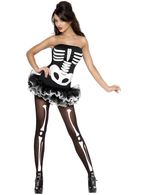 Fever Skeleton Costume Black Dress with Detachable Clear Straps