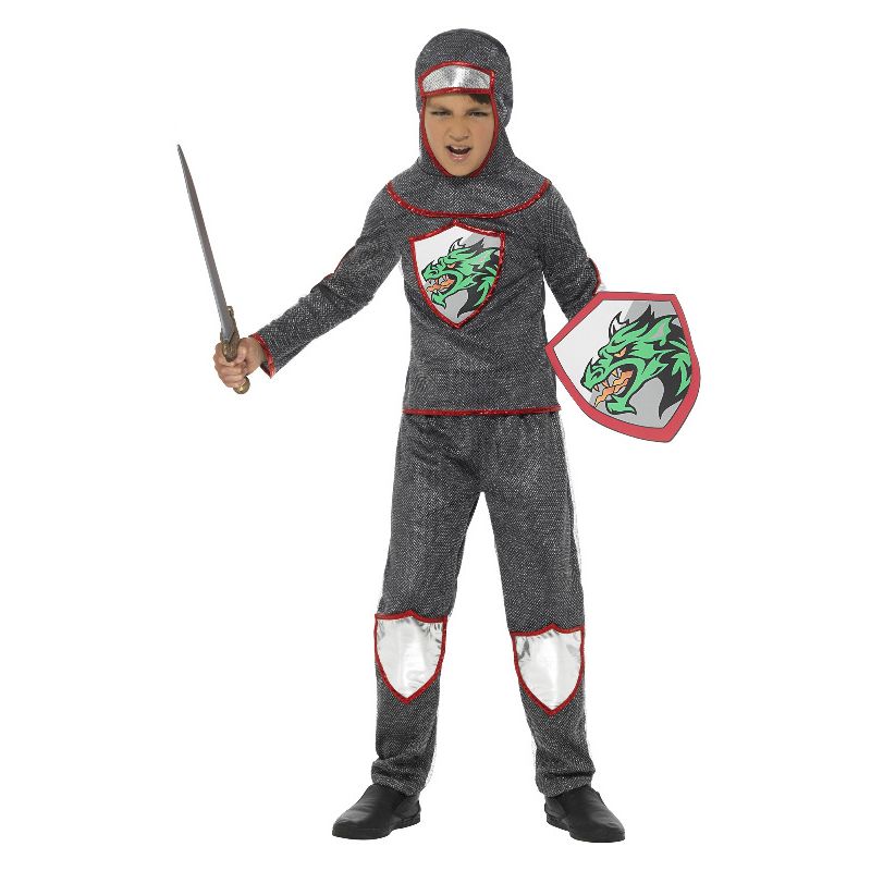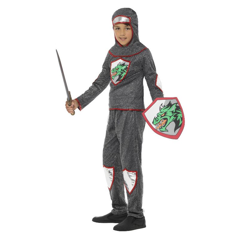 • Deluxe Knight Costume, Silver, with Top, Trousers, Headpiece & Shield
