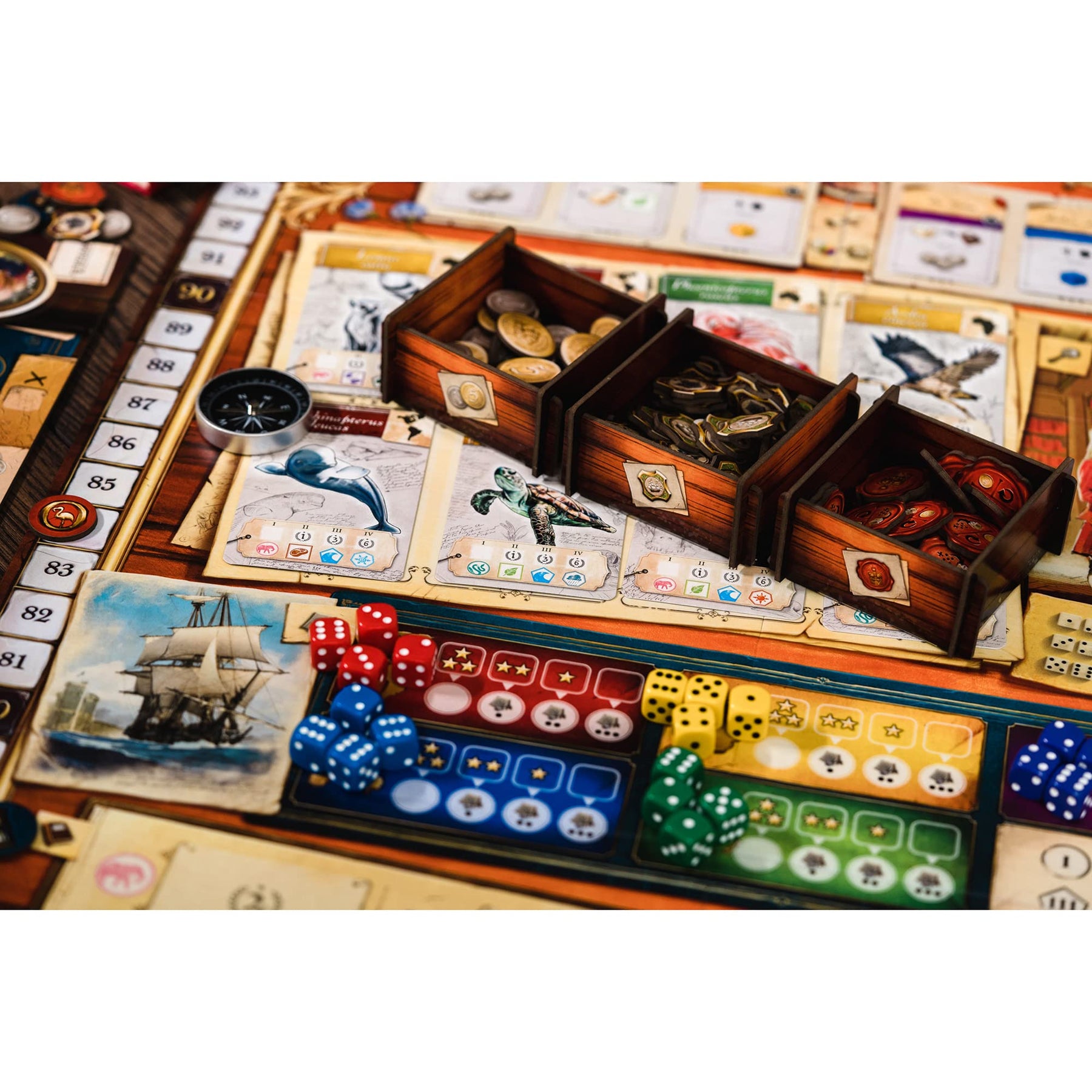 - STRATEGIC WORKER PLACEMENT WITH DICE: Immerse yourself in scientific discovery! Strategically place dice to study animals, prepare research, lead expeditions, and ultimately publish your findings.