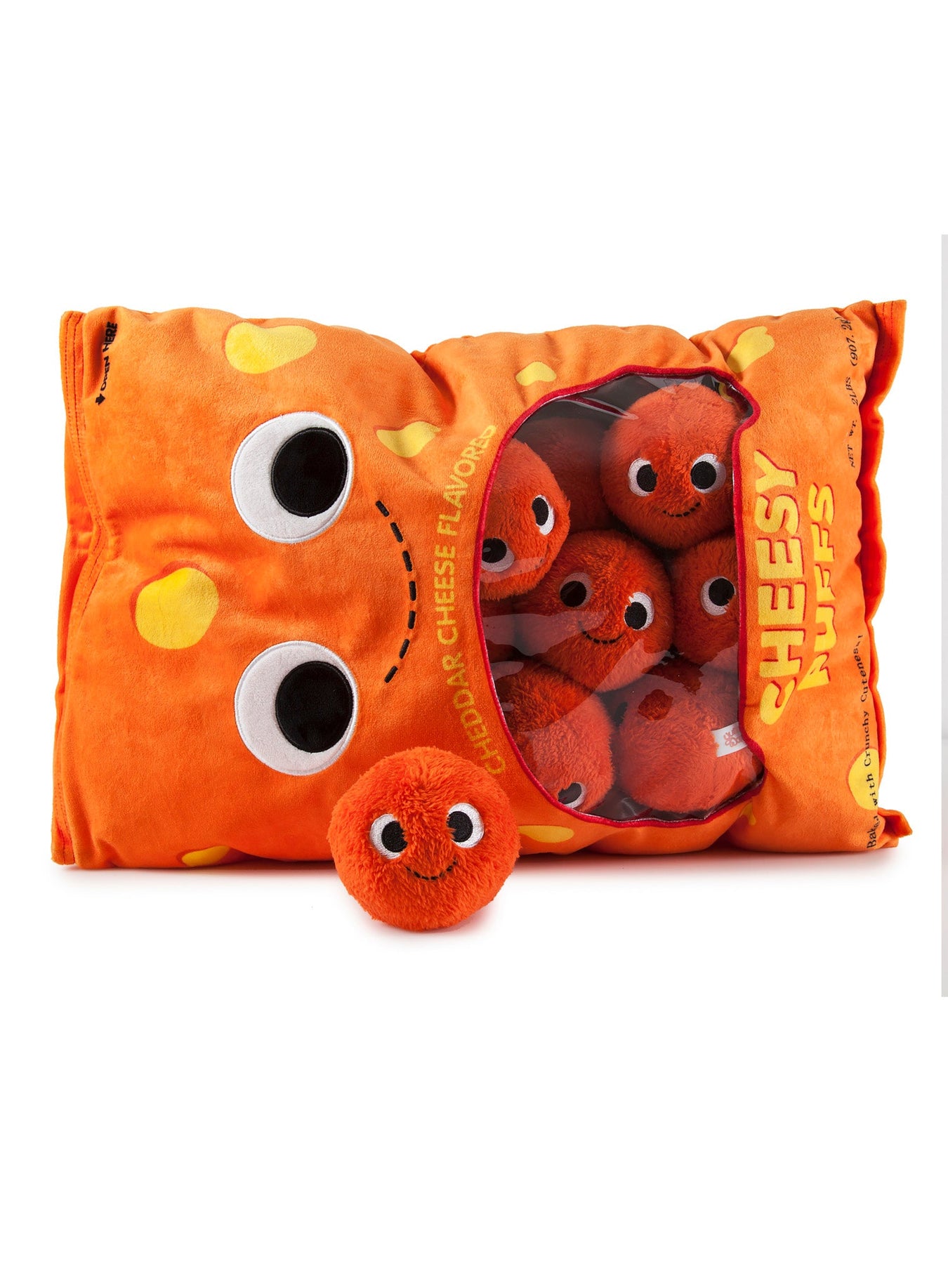 Say goodbye to sweet and hello to cheesy with Arnold & The Puffs! This Yummy World Cheesy Puffs Plush pack brings 24 inches of cheesy fun to your collection. Packed with individual cheese puff plush balls, each one crinkles for an extra surprise. Made for fans of savory snacks, this plush pillow features the signature Yummy World googly eyes and a dash of personality, making it a must-have for your plush collection. Show off your cheesy side and cuddle up with Arnold & The Puffs today!